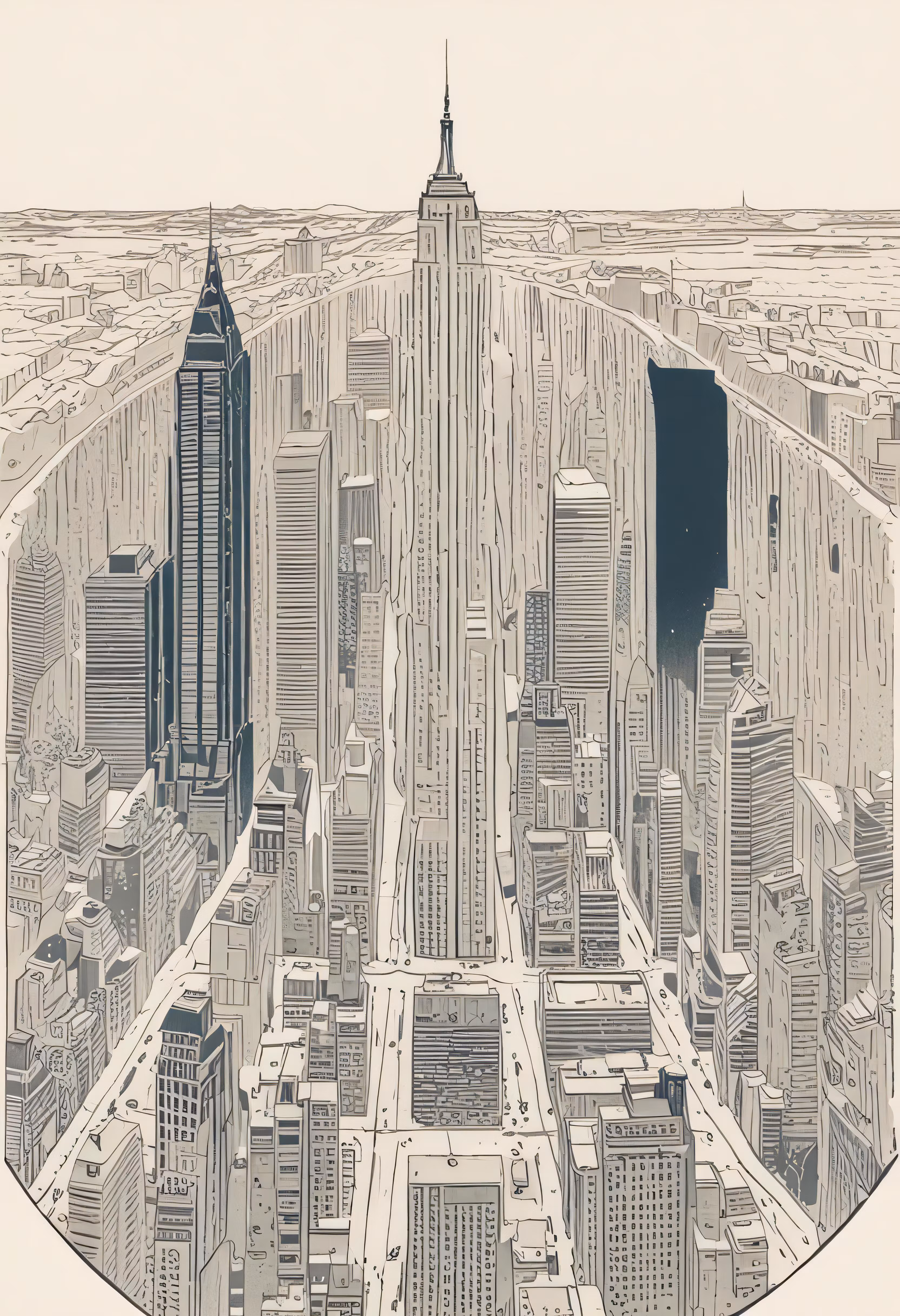 High resolution picture, free to use, an artistic drawing of new york in grayscape