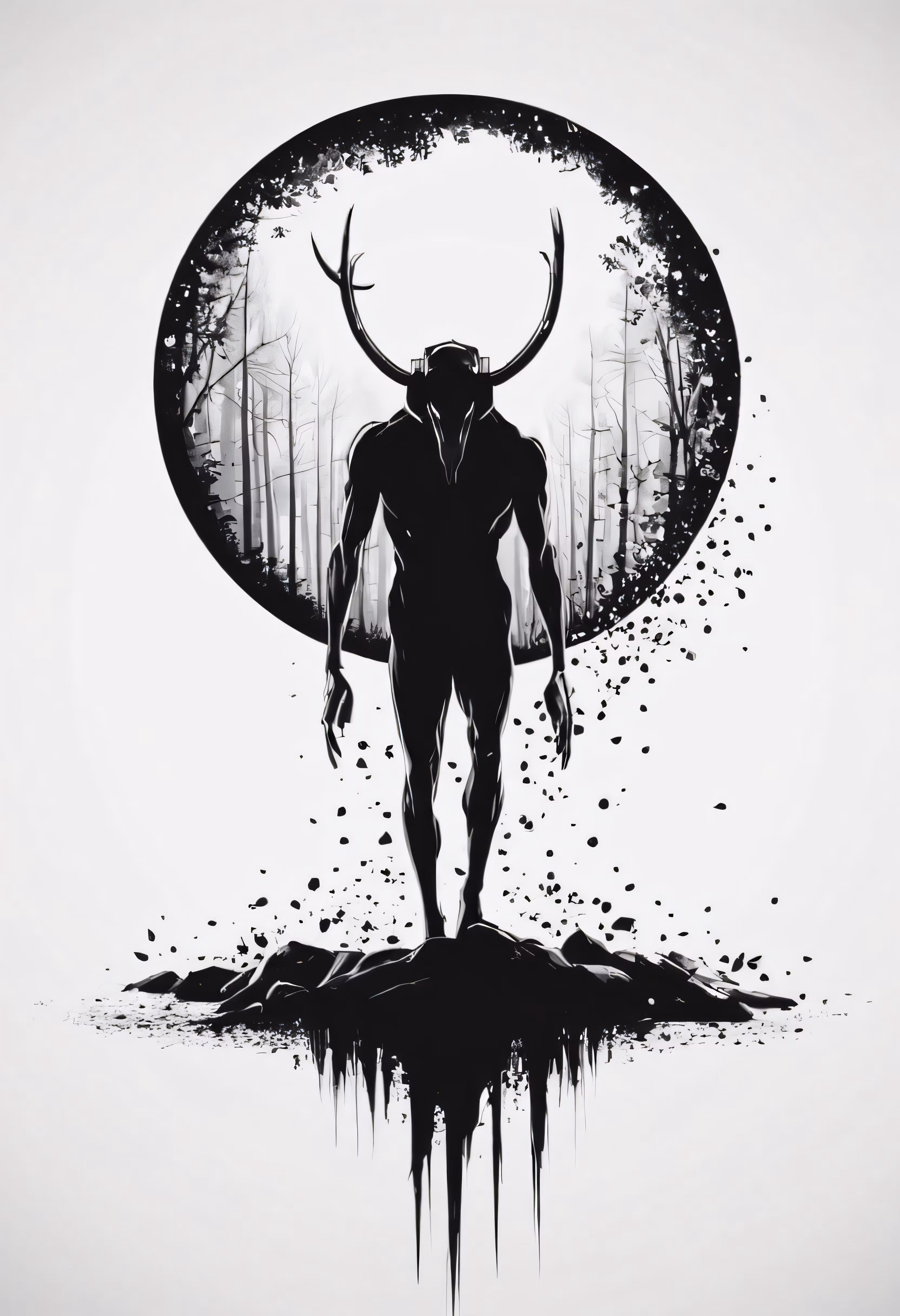 High resolution picture, free to use, an artistic illustration featuring a horned man walking up the hill