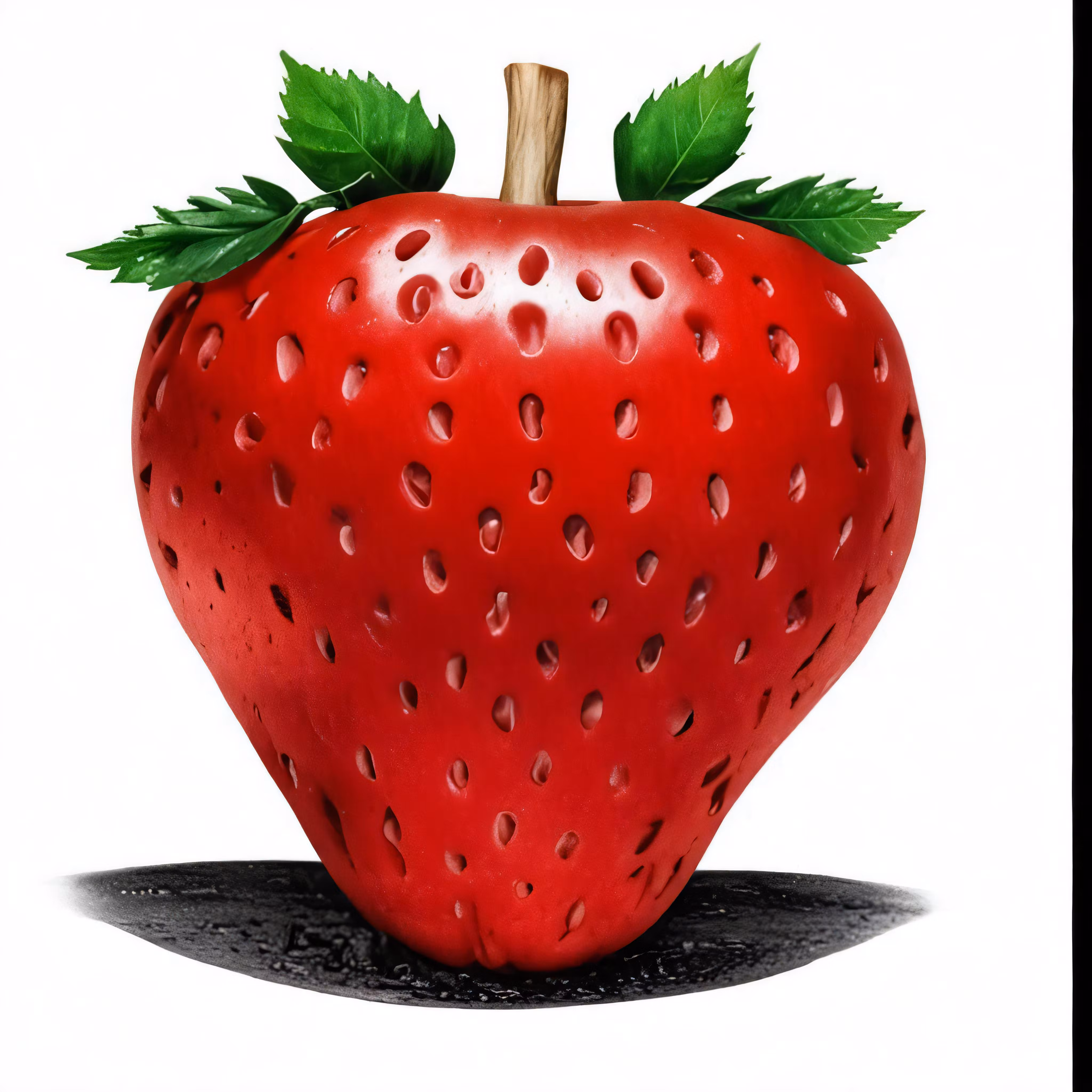 High resolution picture, free to use, an artistic image of a strawberry with leaves