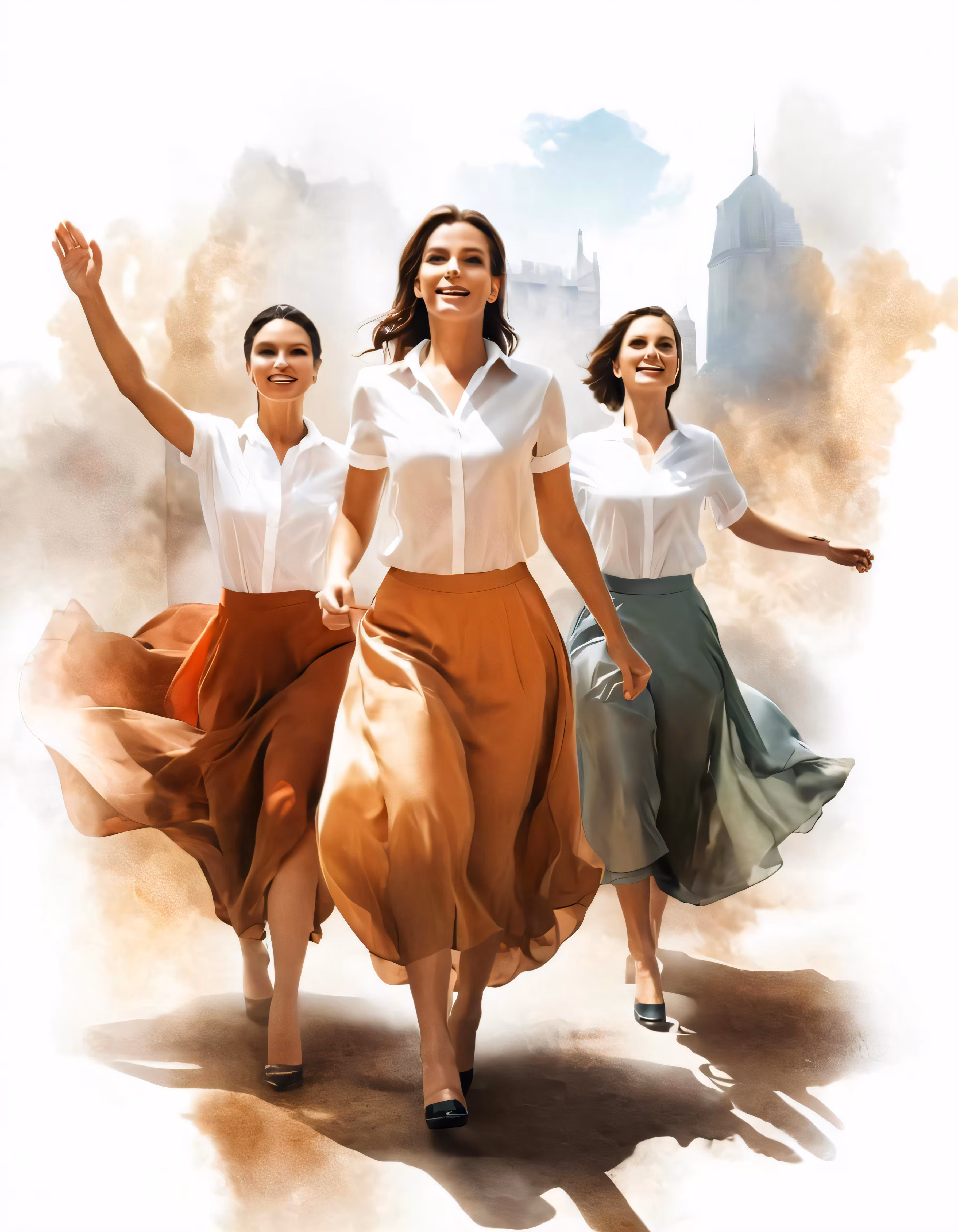 High resolution picture, free to use, an artistic painting with three women and their skirts