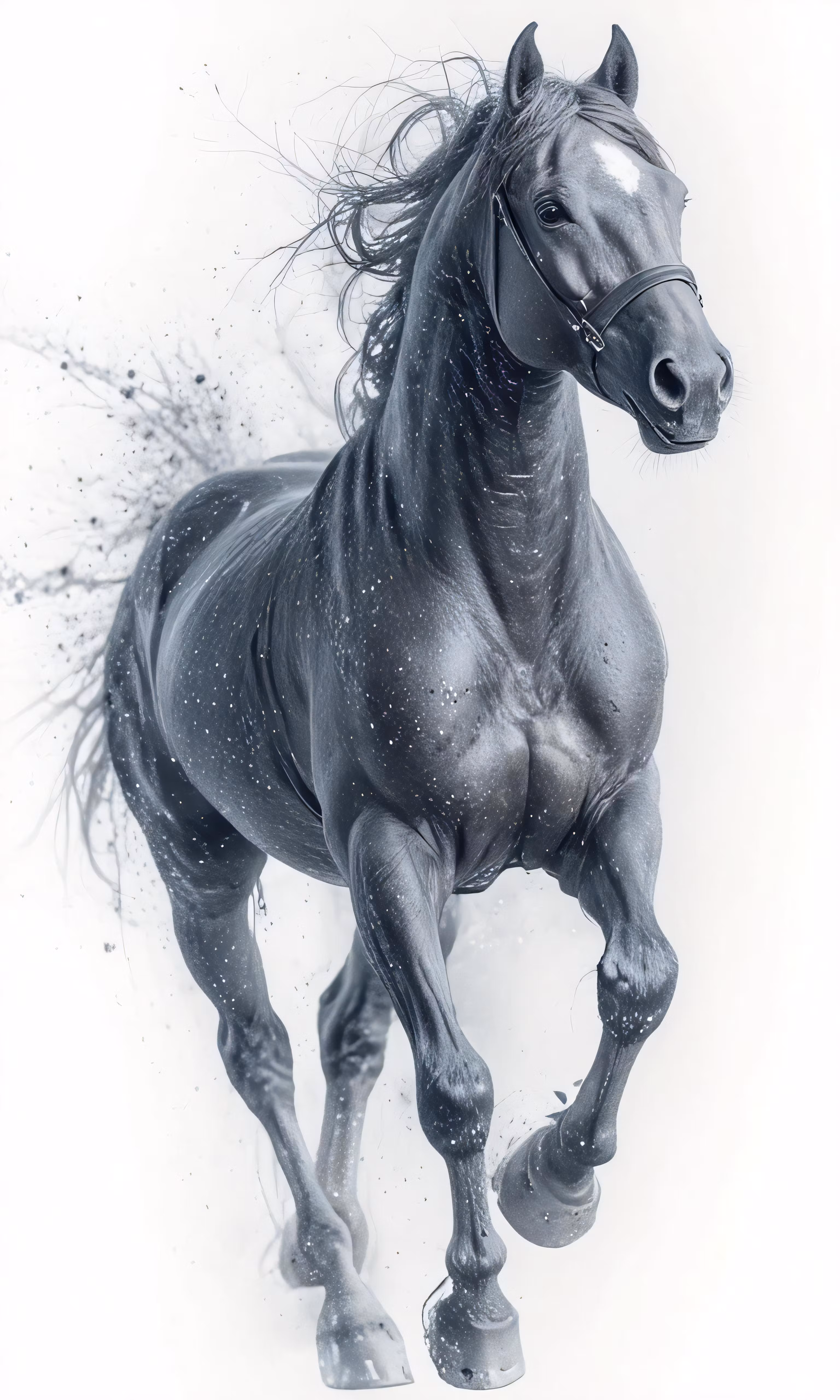 High resolution picture, free to use, an artistic photo of a black horse on a white background