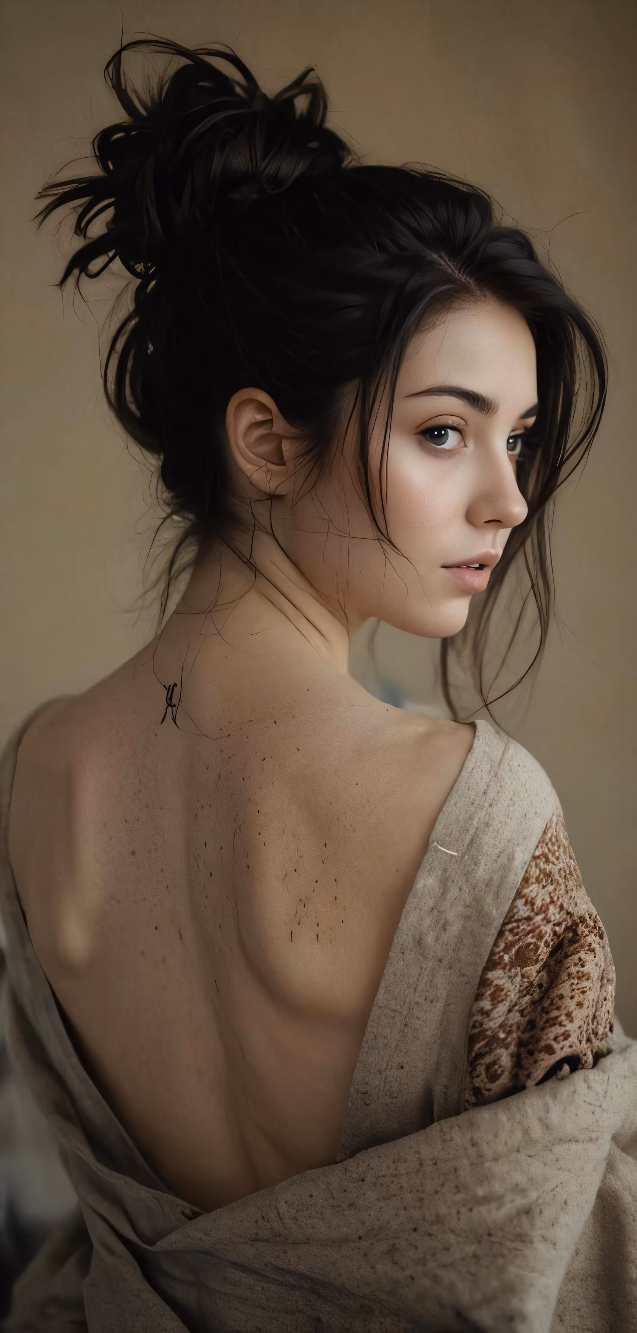 High resolution picture, free to use, an artistic photo of a woman with freckles on her neck