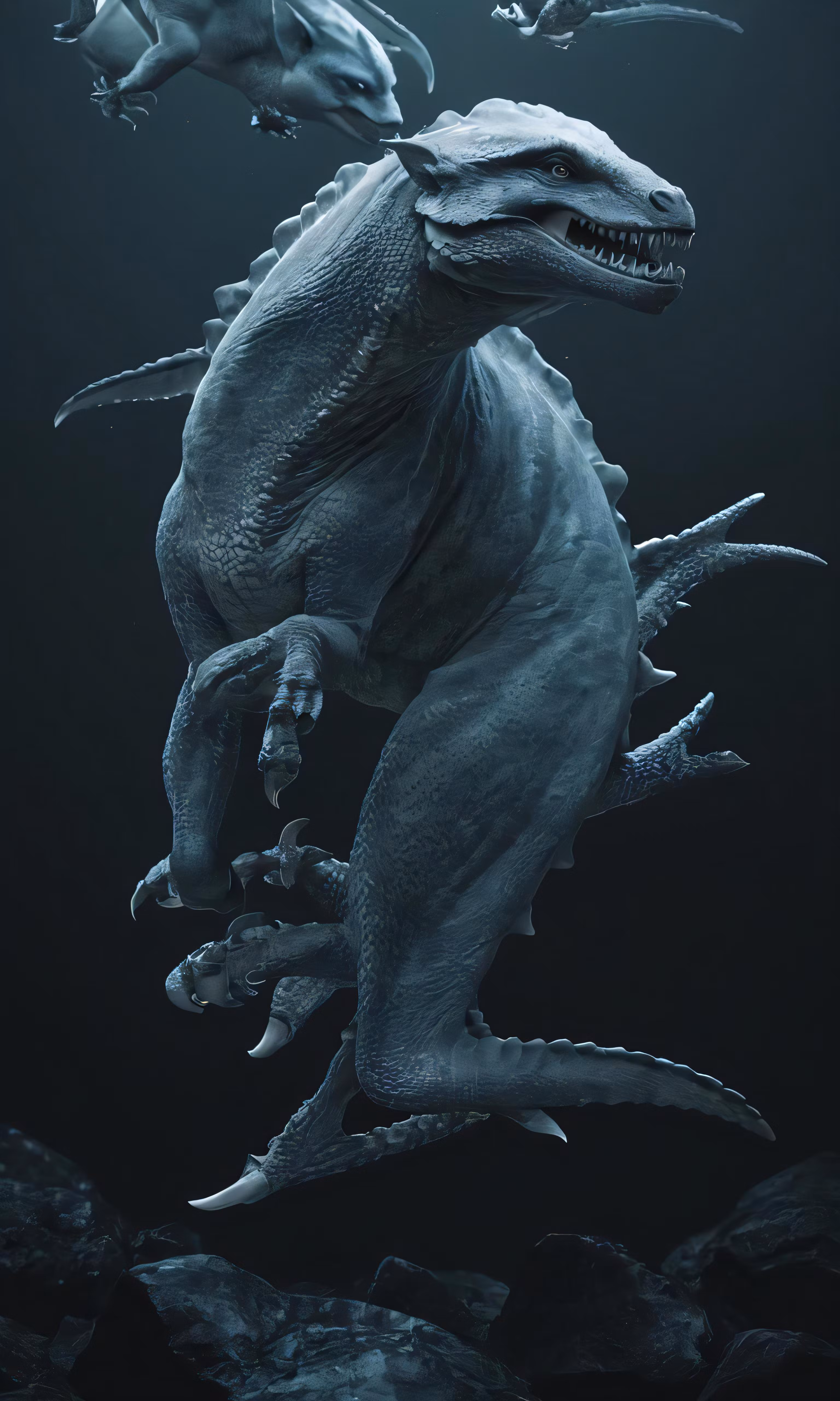 High resolution picture, free to use, an artistic photo of dinosaurs swimming in water
