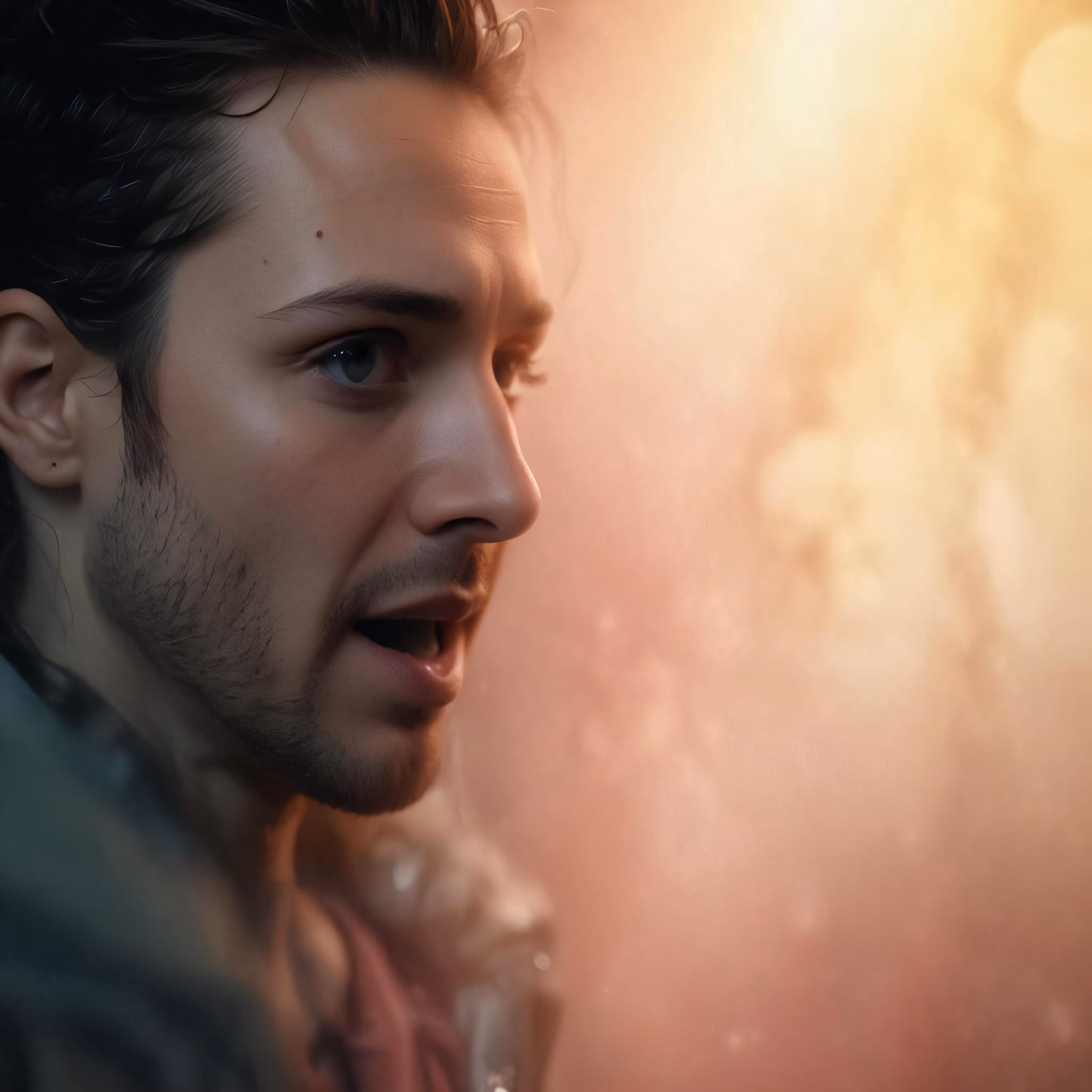 High resolution picture, free to use, an artistic photograph of a man, face half open