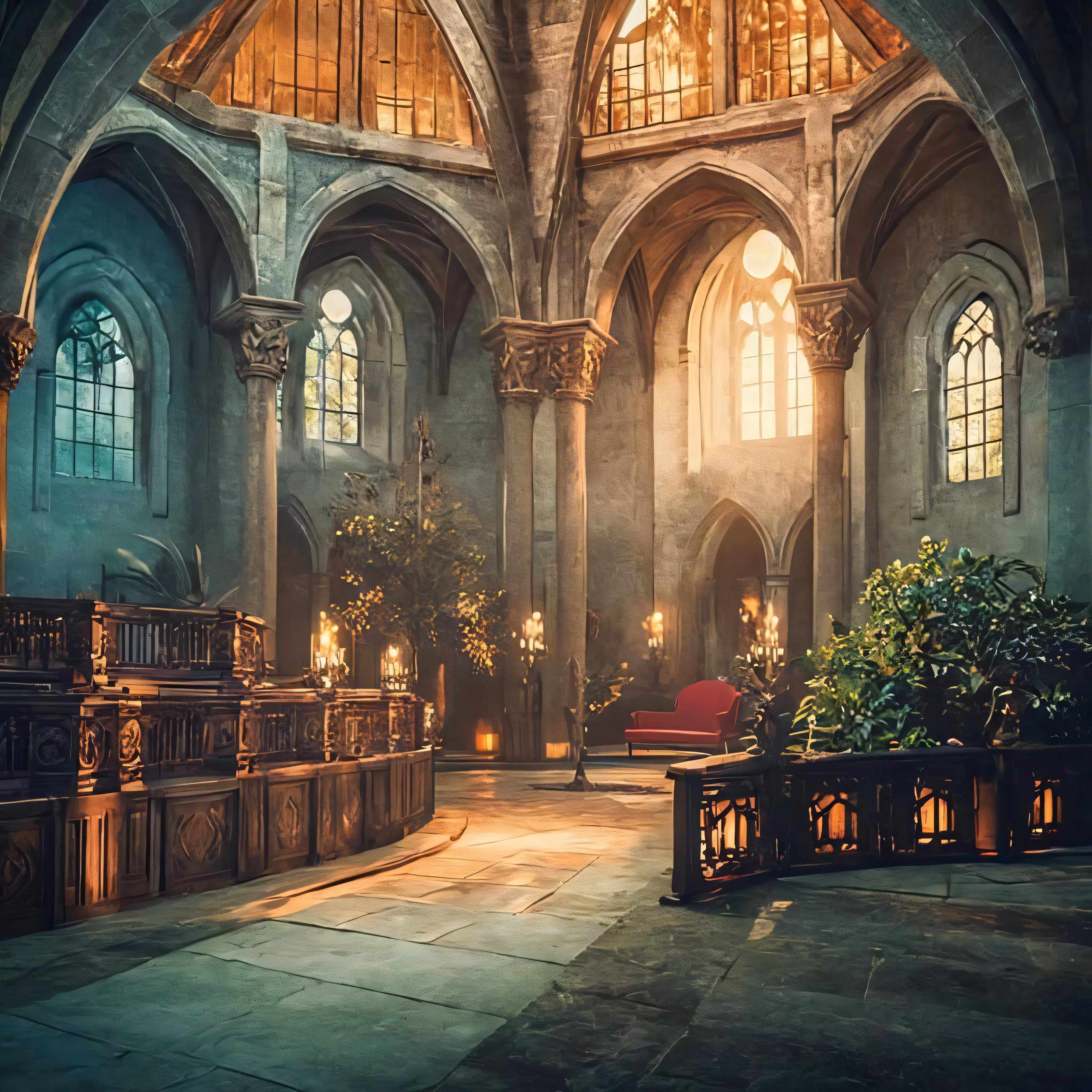 High resolution picture, free to use, an artistic rendering of the interior of a church