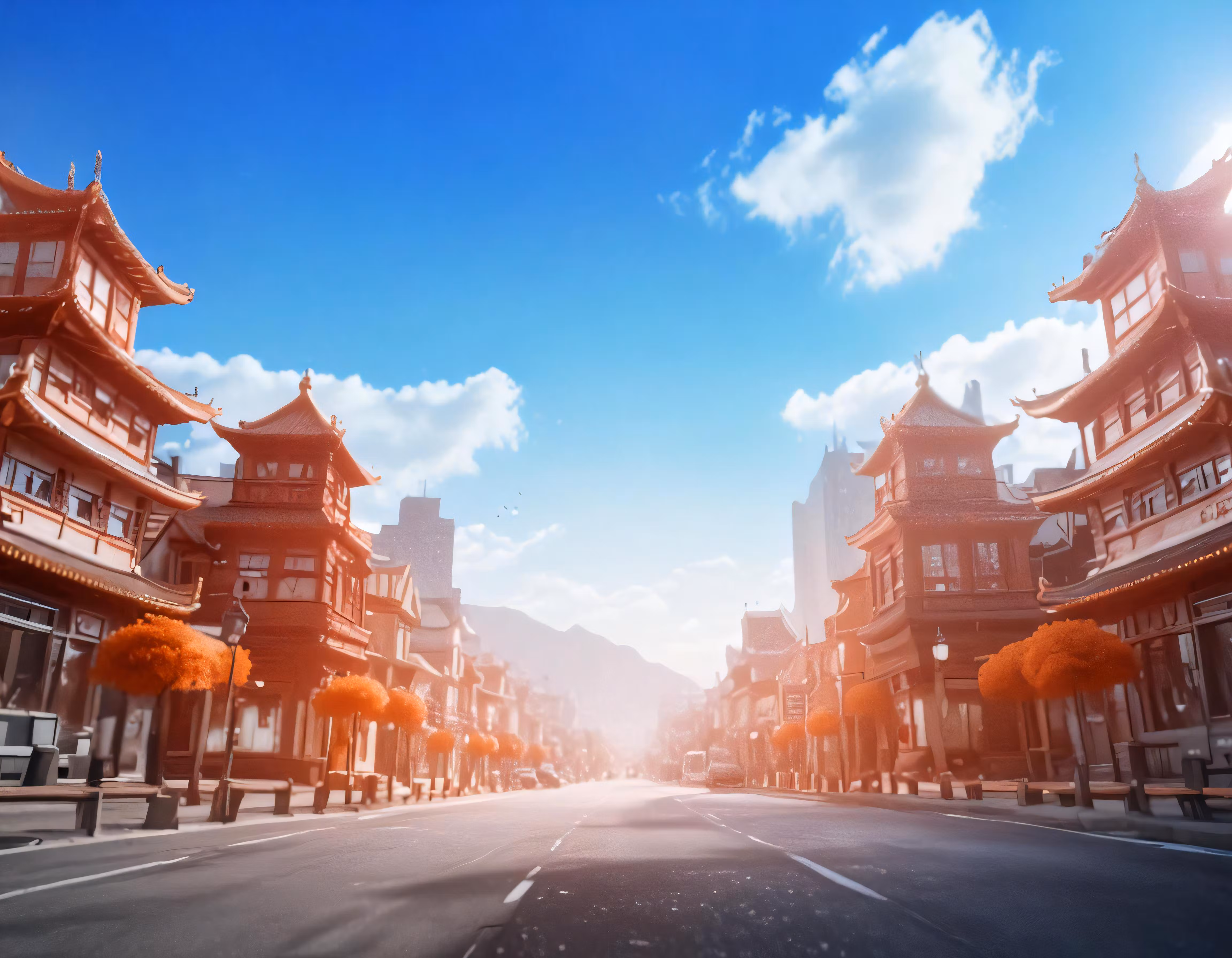 High resolution picture, free to use, an artistic scene of an empty street with cars and buildings