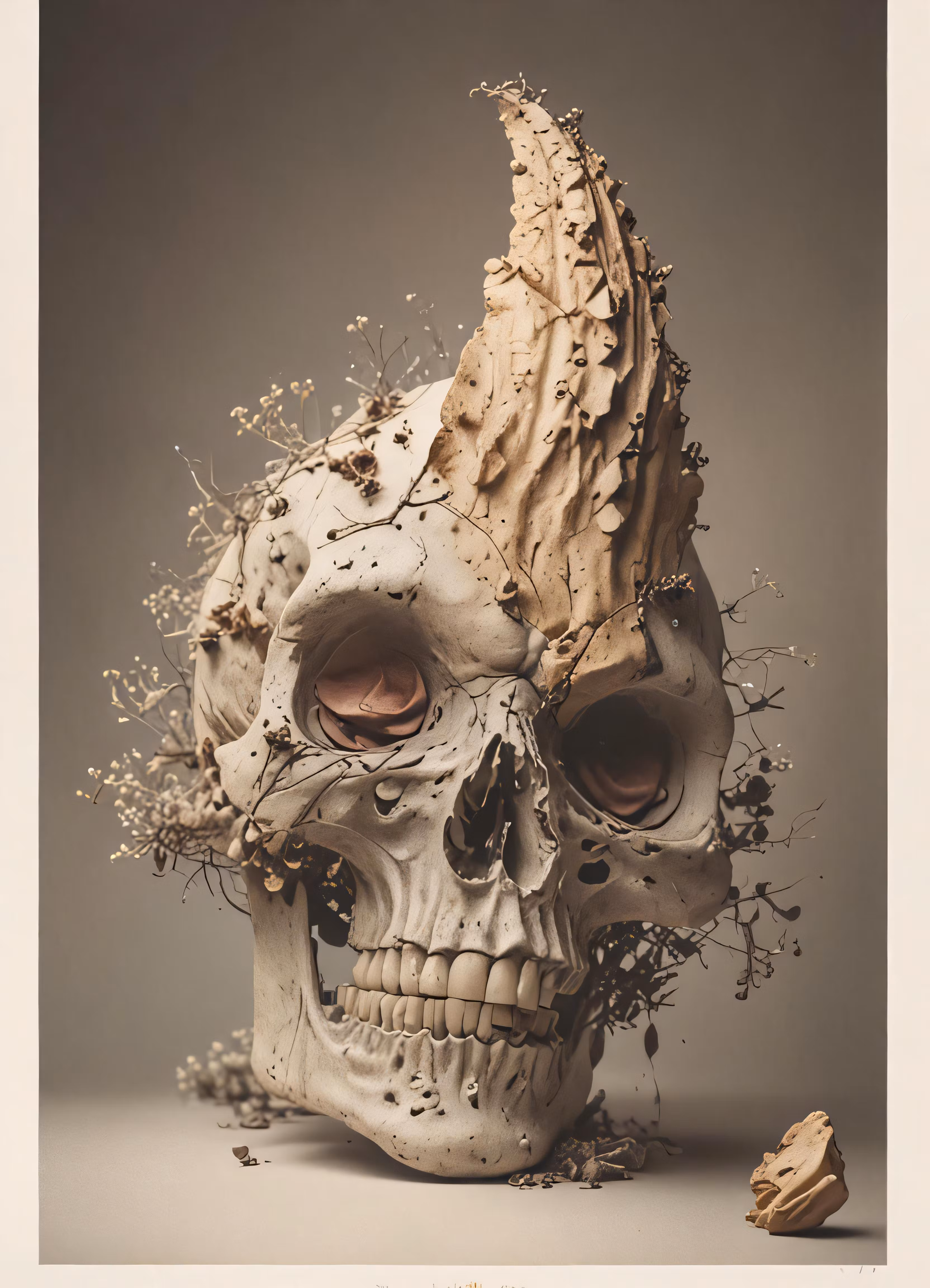 High resolution picture, free to use, an artistically created skull with bullet in its mouth