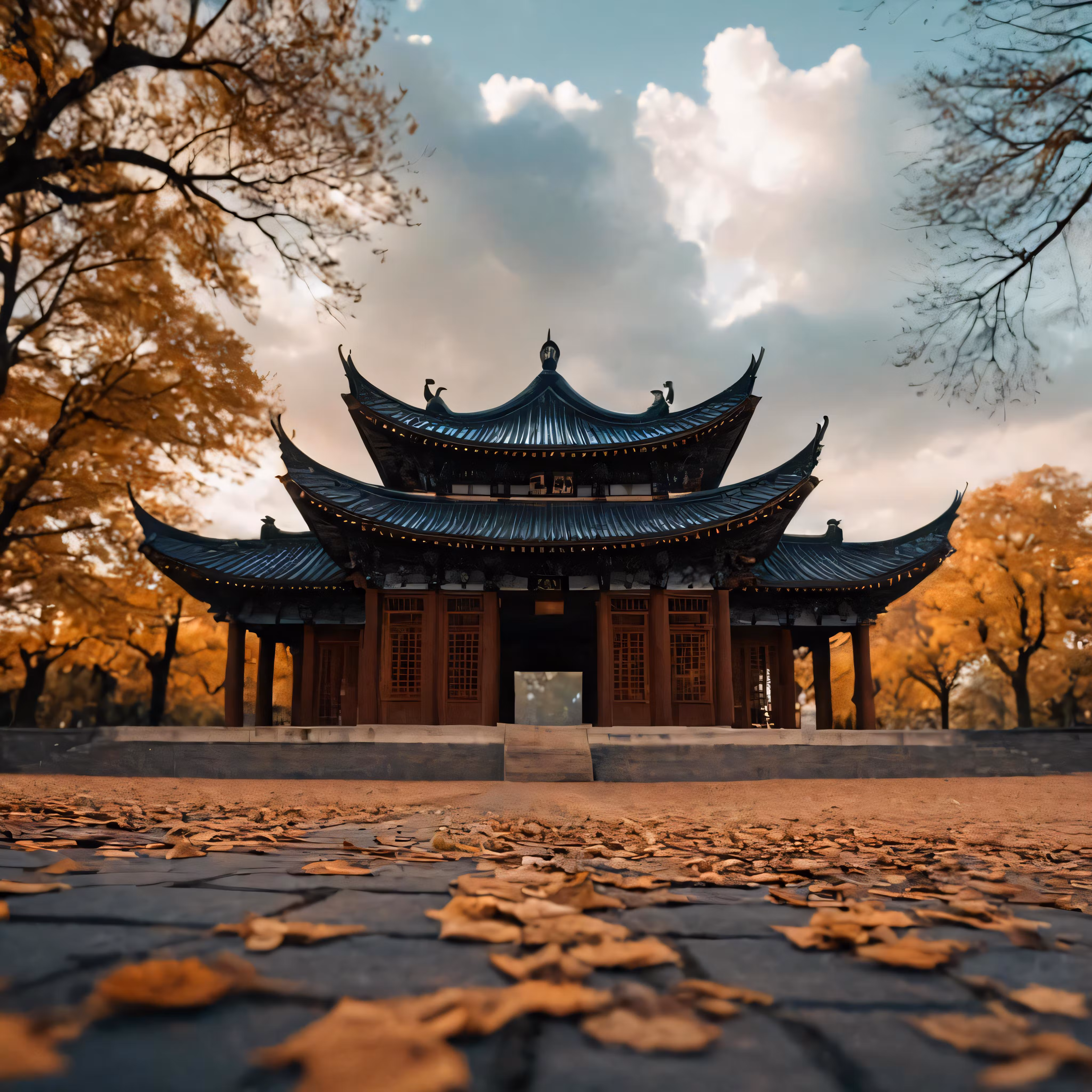 High resolution picture, free to use, an asian architecture that looks out to the woods