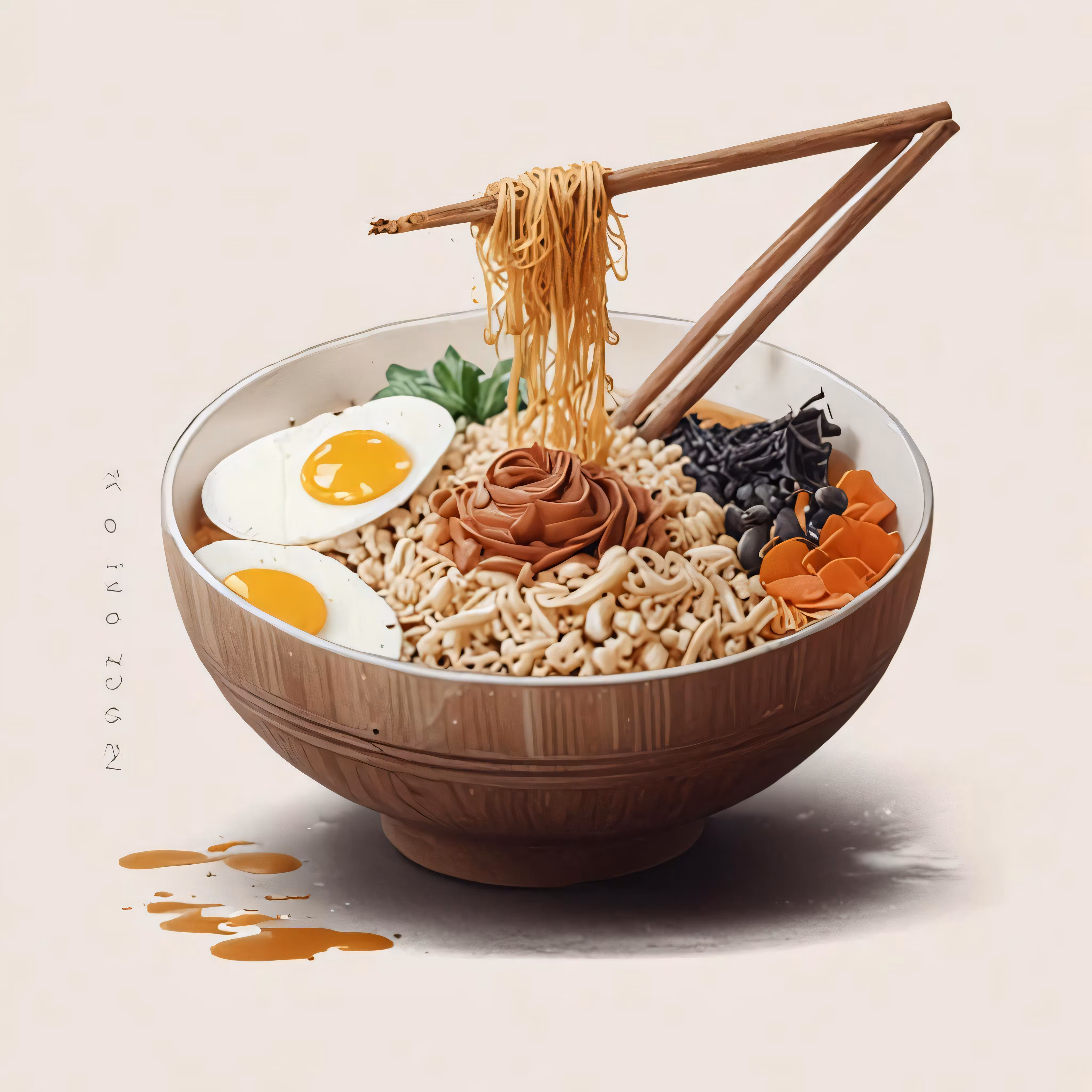 High resolution picture, free to use, an asian dish with noodles, egg and vegetables