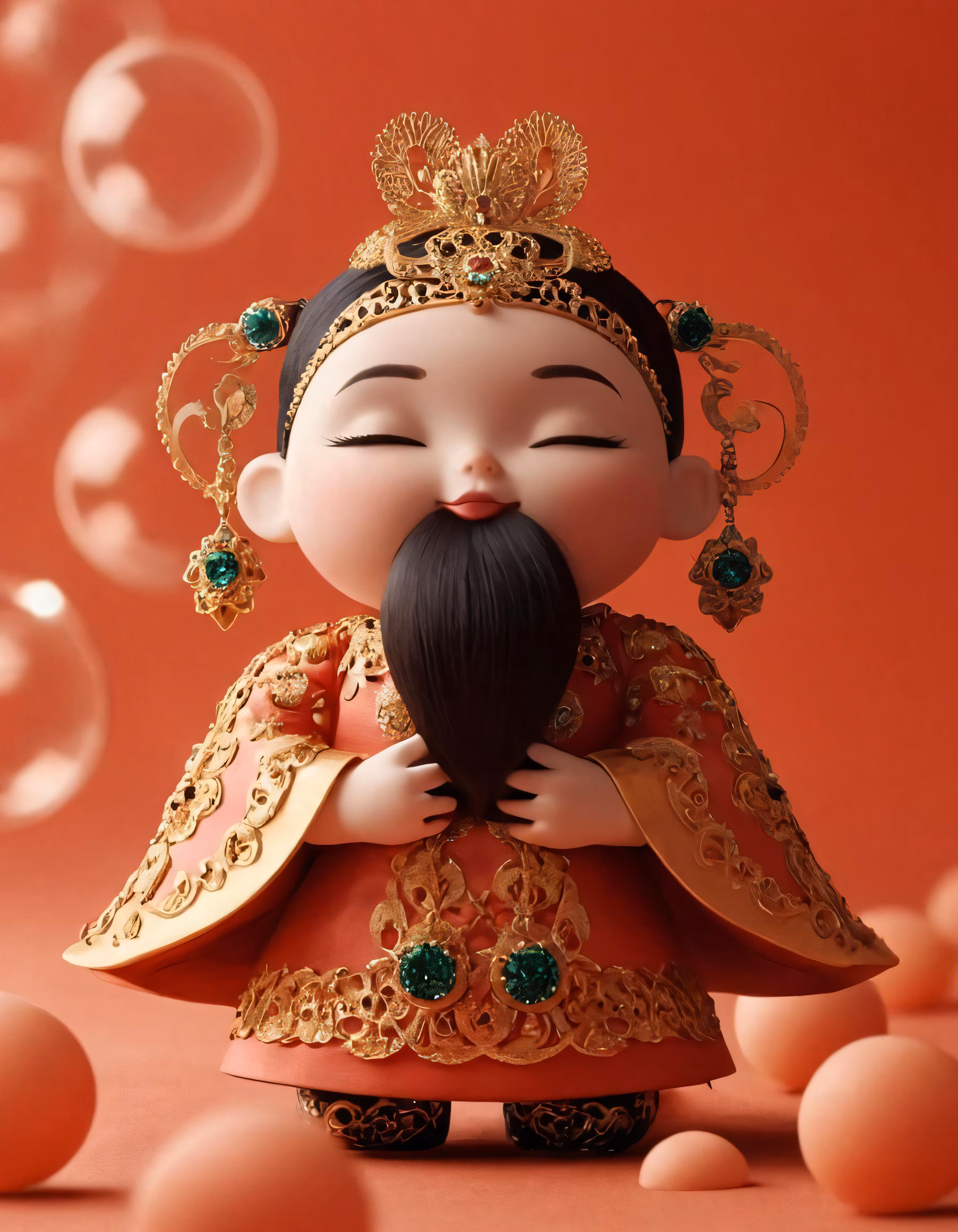 High resolution picture, free to use, an asian doll holding a baby with bubbles flying around