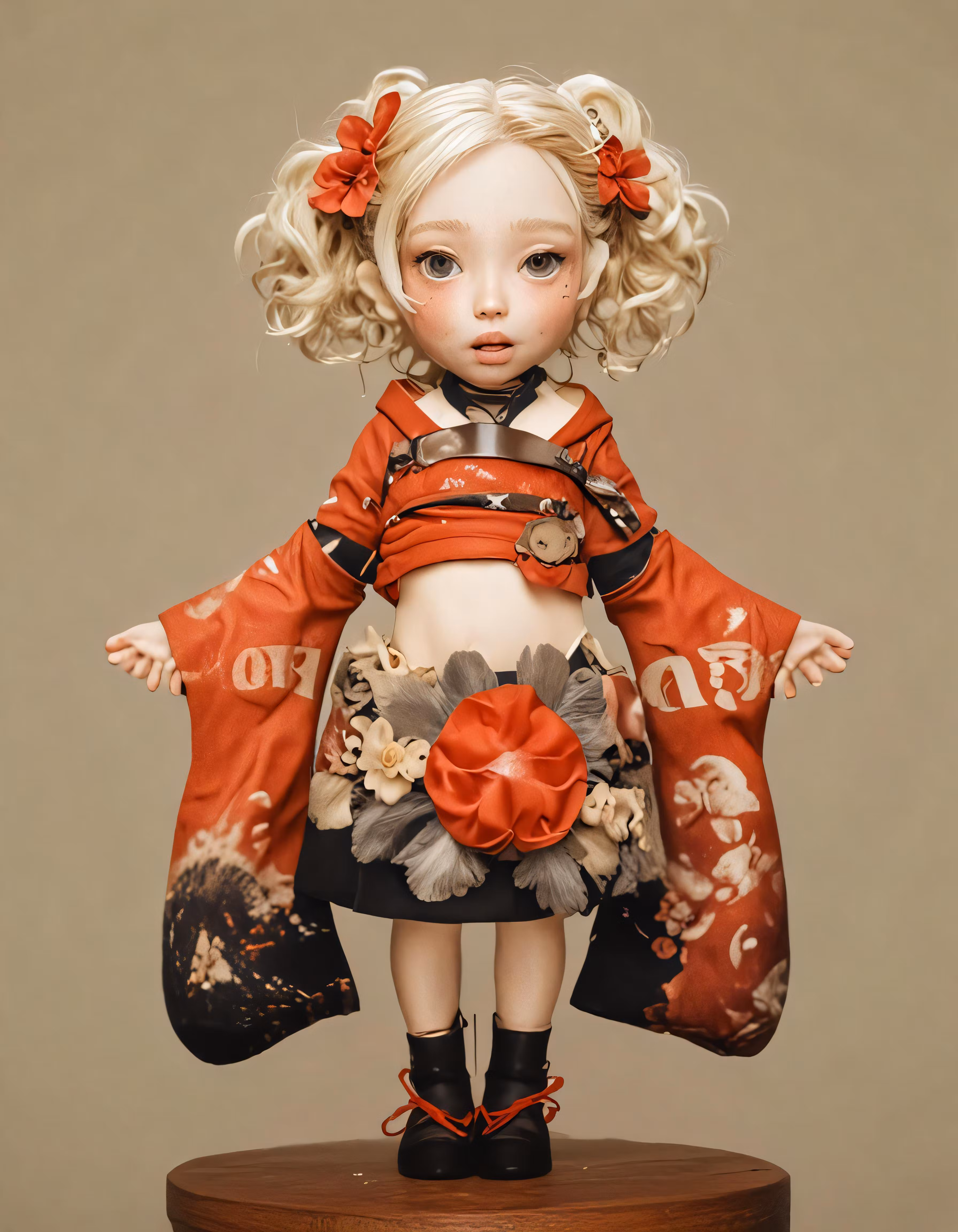 High resolution picture, free to use, an asian doll sitting on a table with a jacket over her body