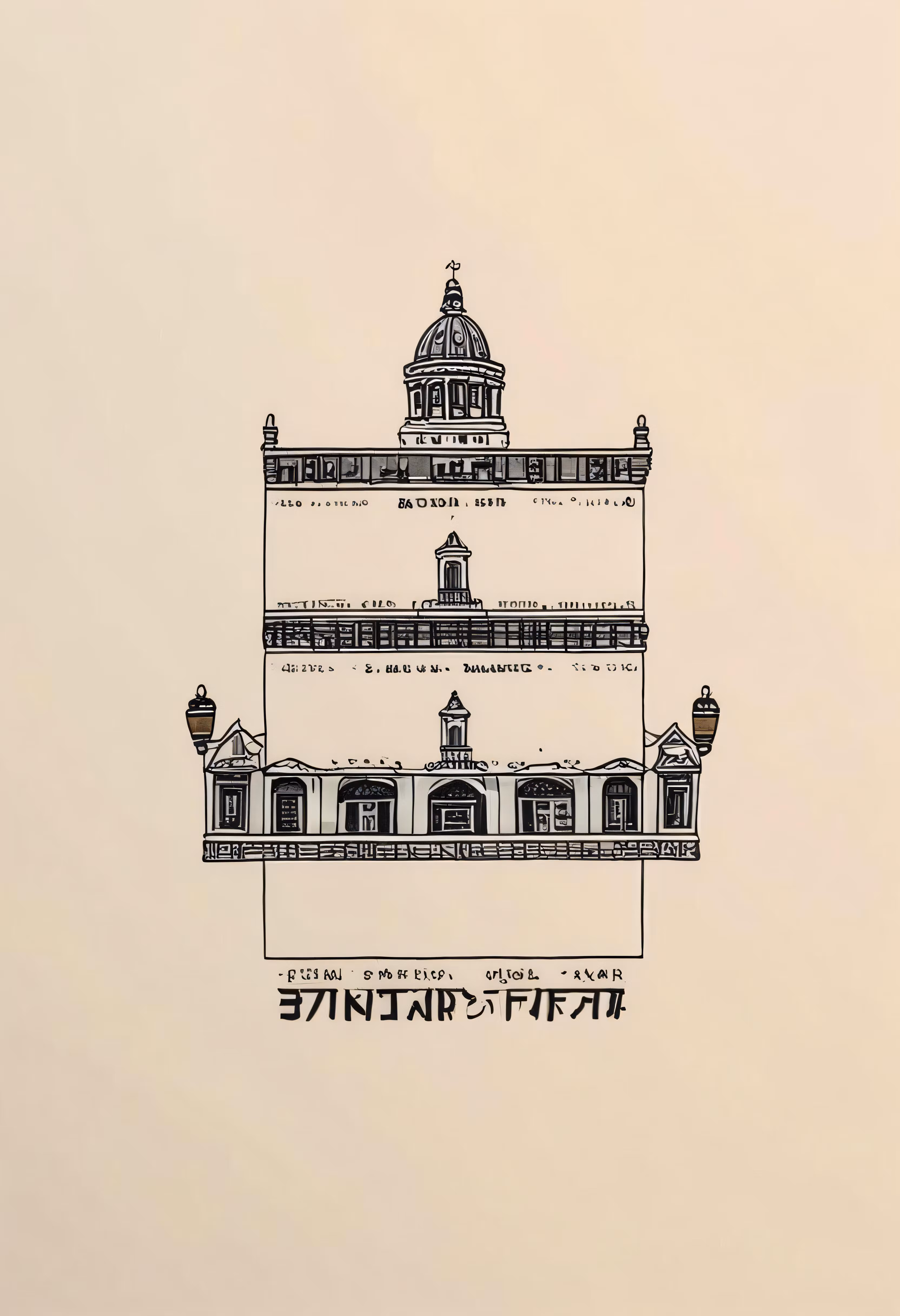 High resolution picture, free to use, an asian style drawing of a large building with three stories