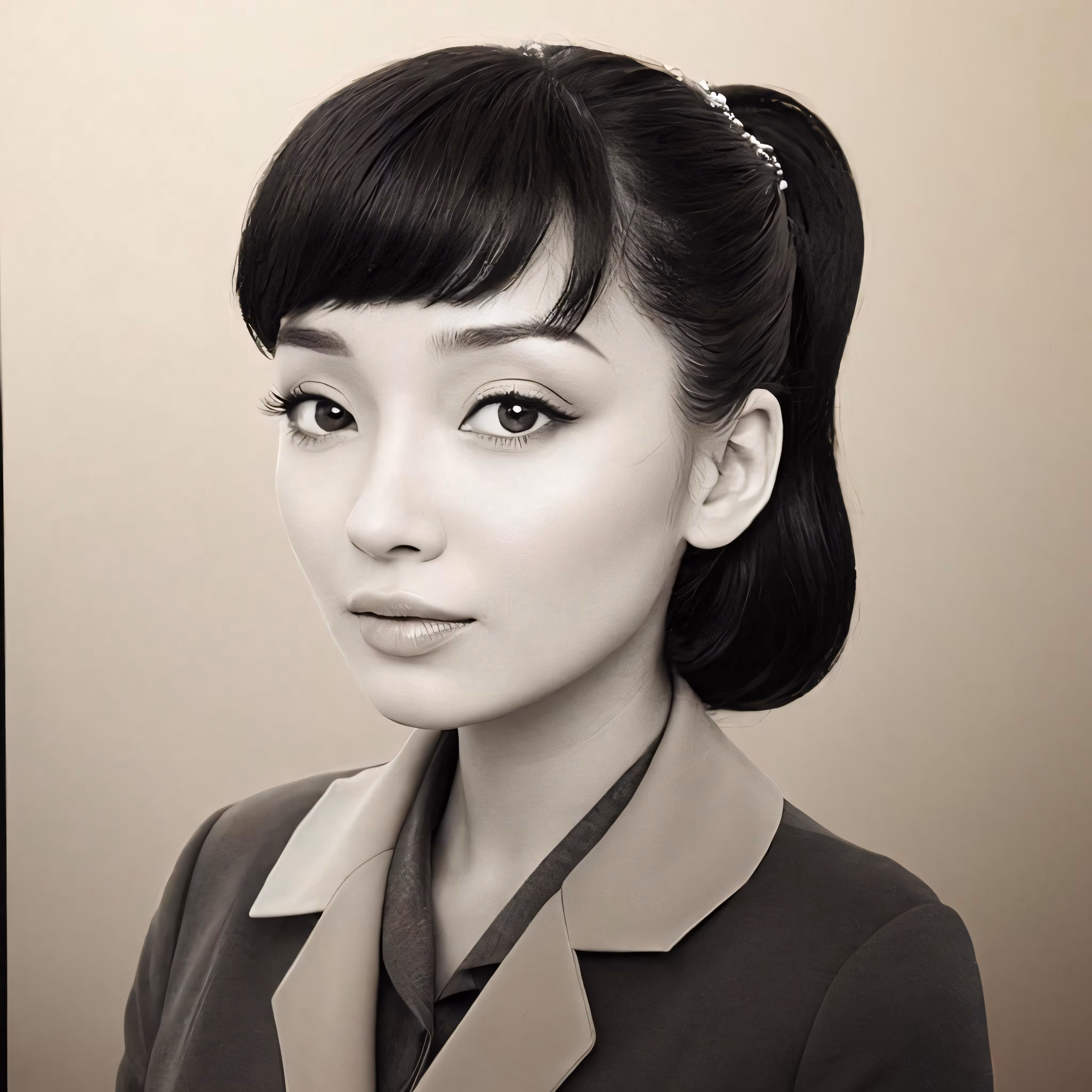 High resolution picture, free to use, an asian woman posing for the camera in black and white