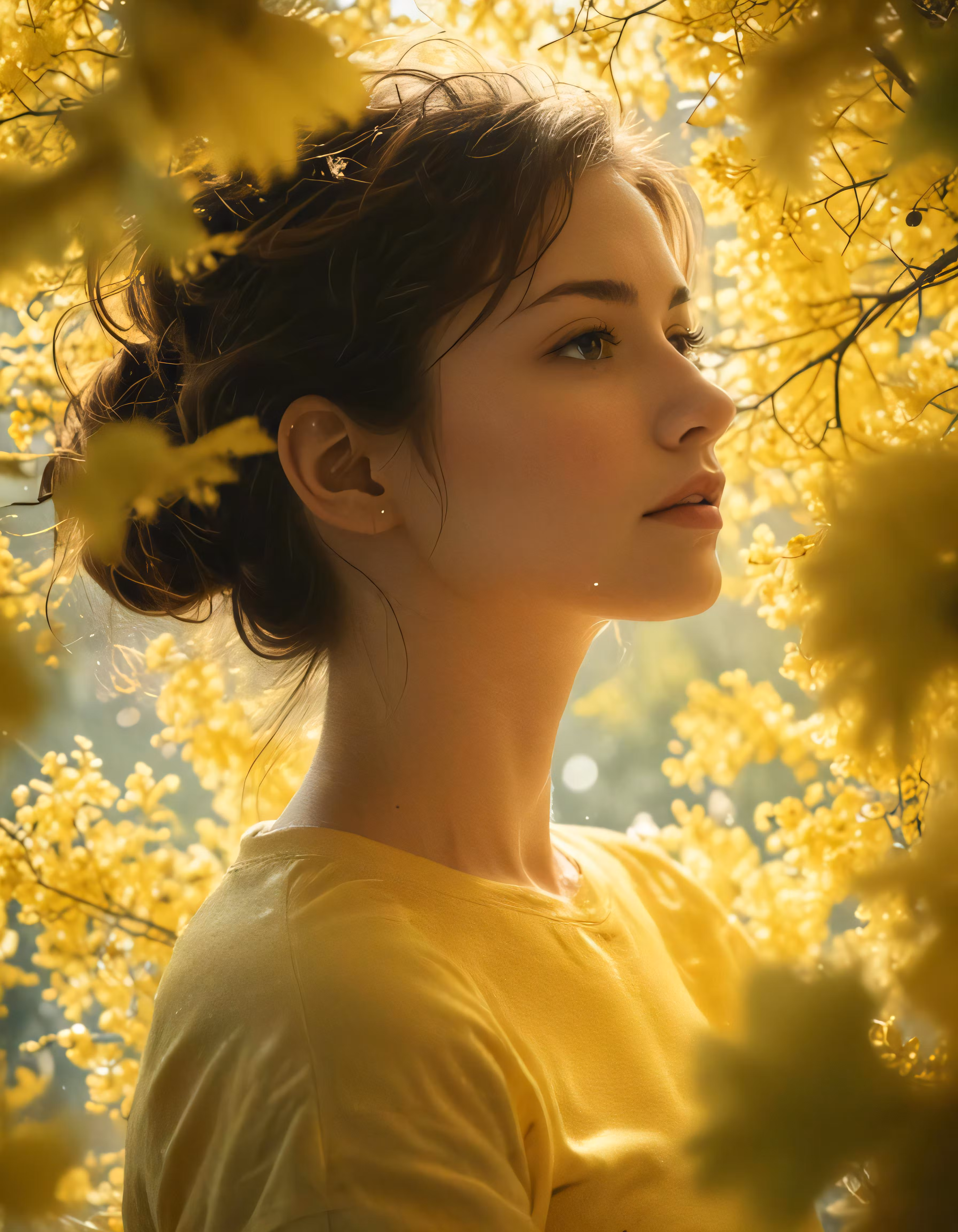 High resolution picture, free to use, an asian woman standing in the middle of some flowers