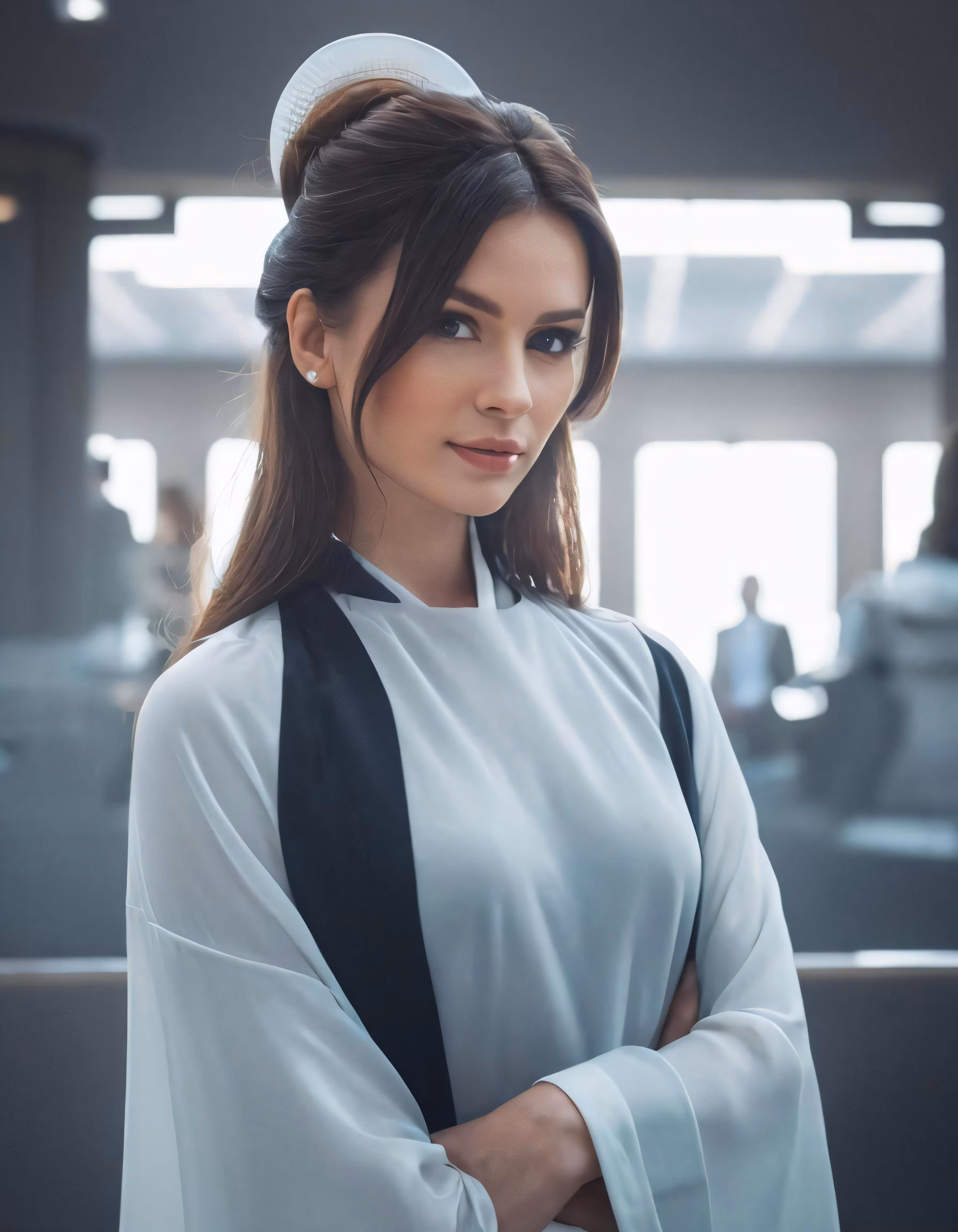 High resolution picture, free to use, an asian woman wearing a white kimono and black tie