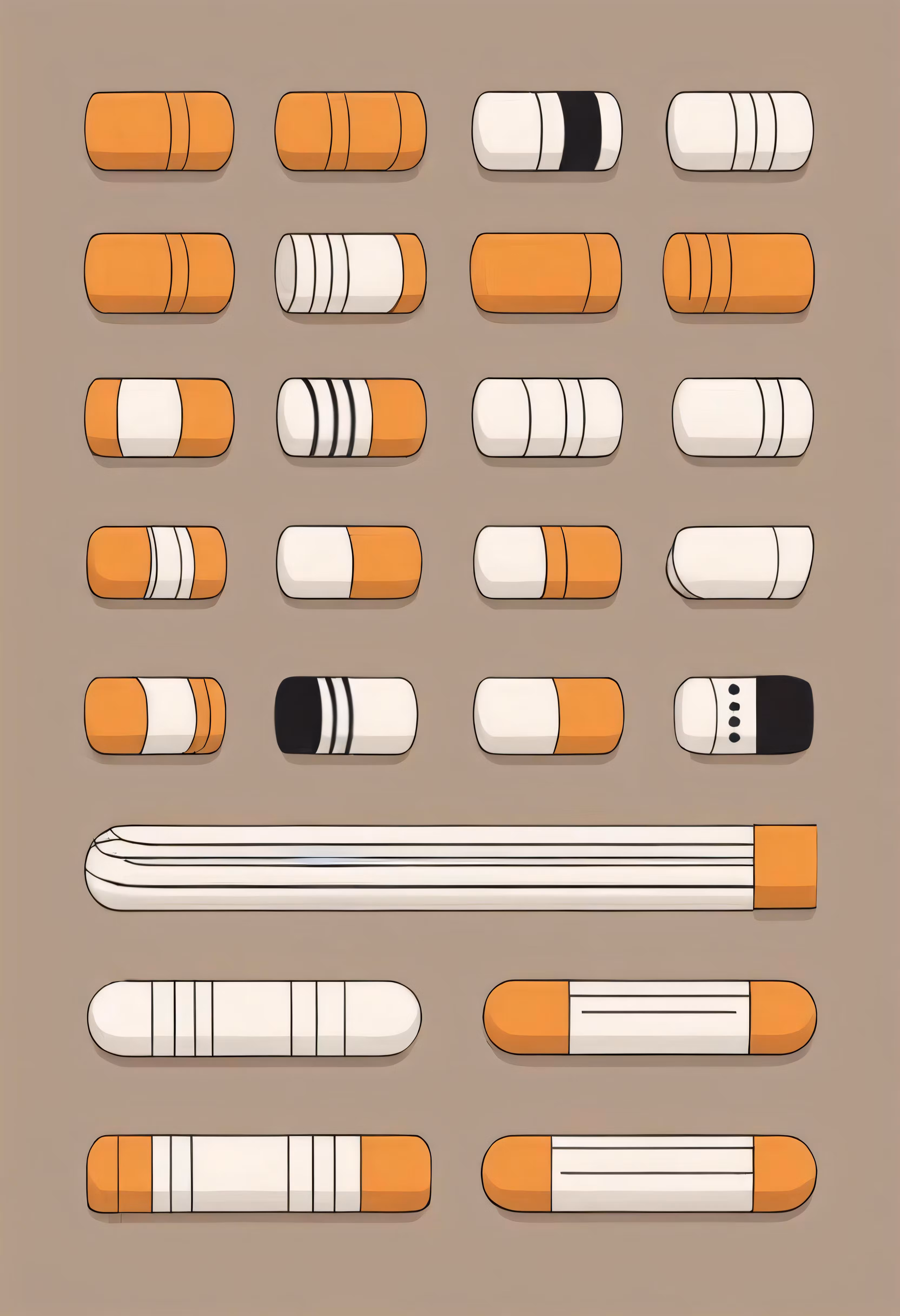 High resolution picture, free to use, an assortment of cigarettes arranged in different styles