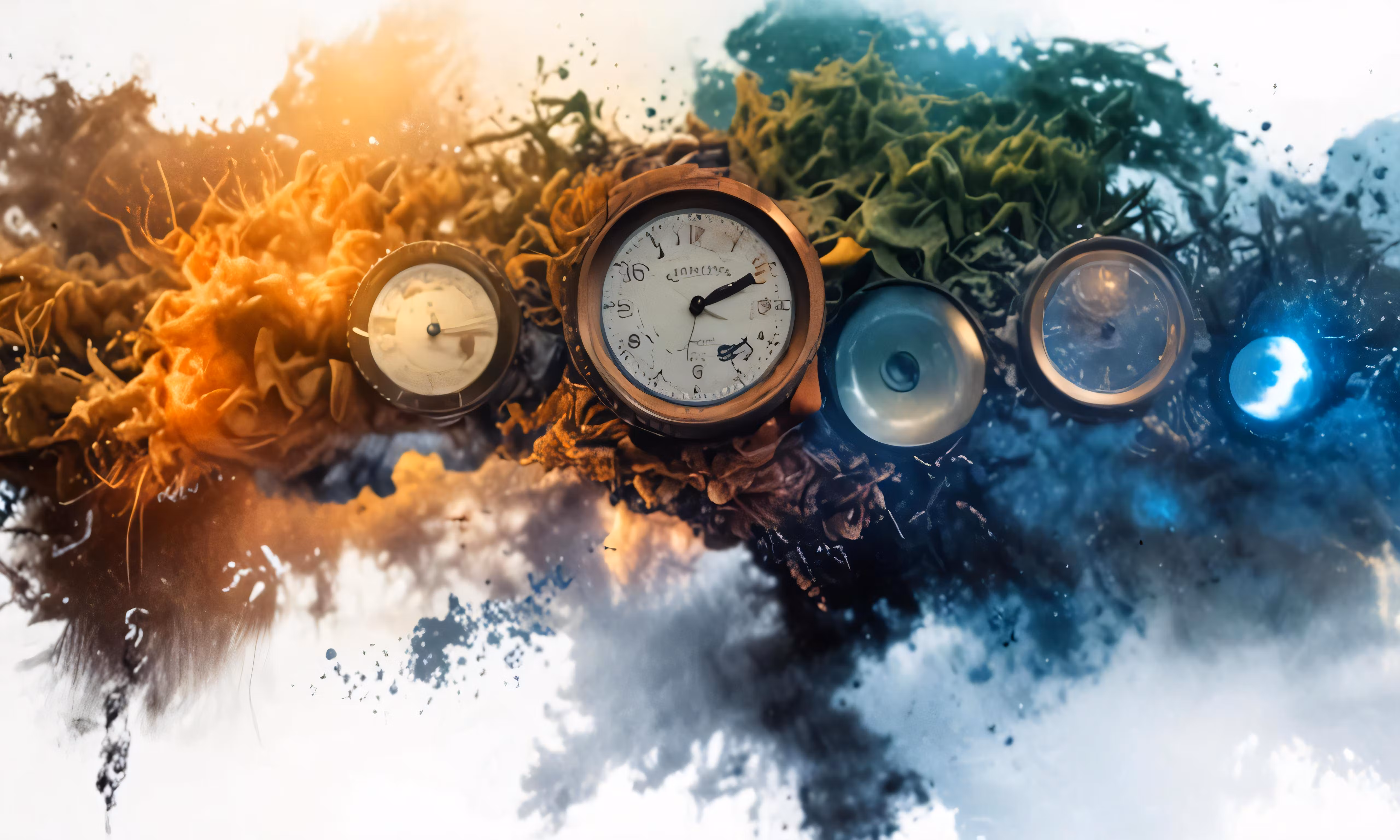 High resolution picture, free to use, an assortment of clocks placed together in the clouds
