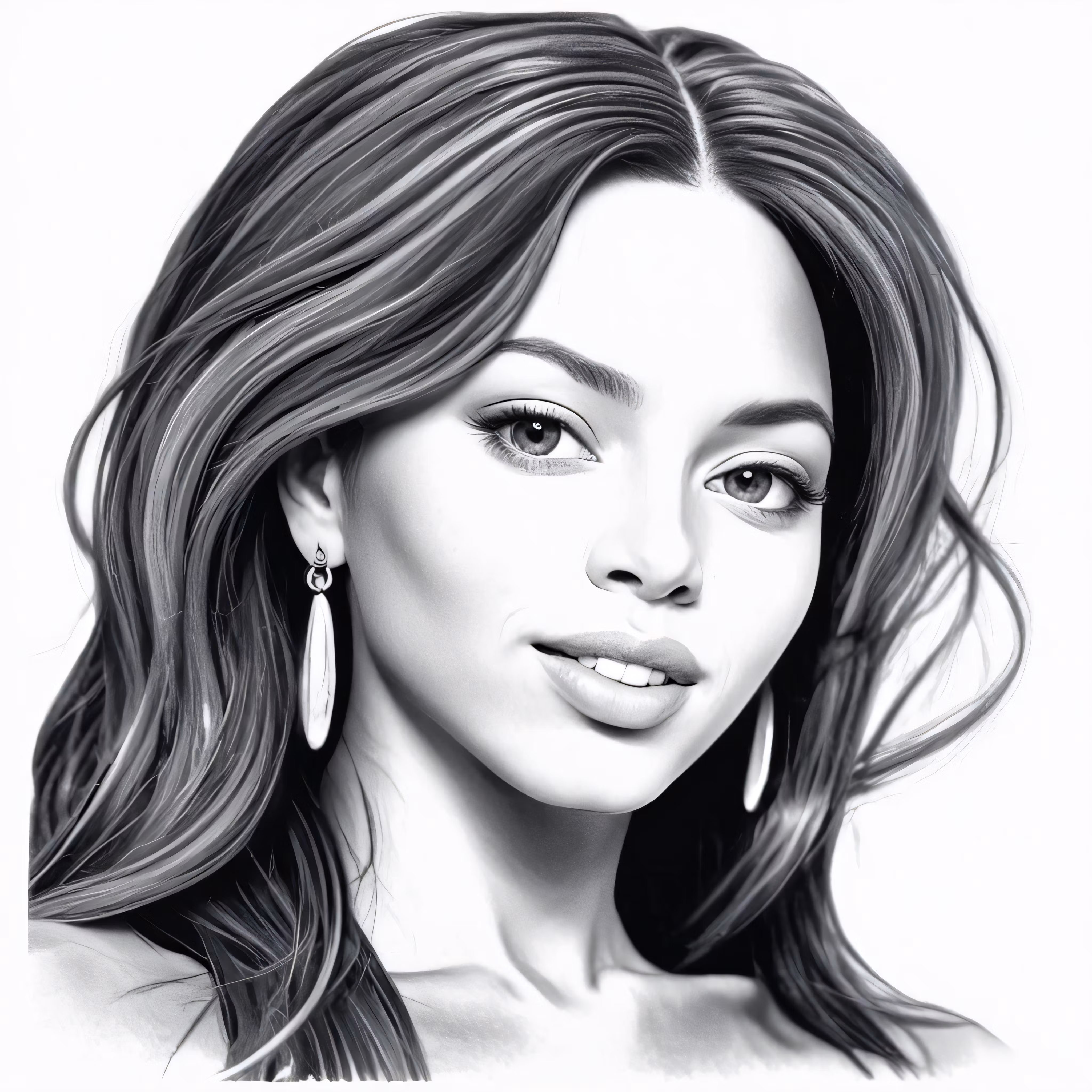 High resolution picture, free to use, an attractive woman is drawn in charcoal with a pencil