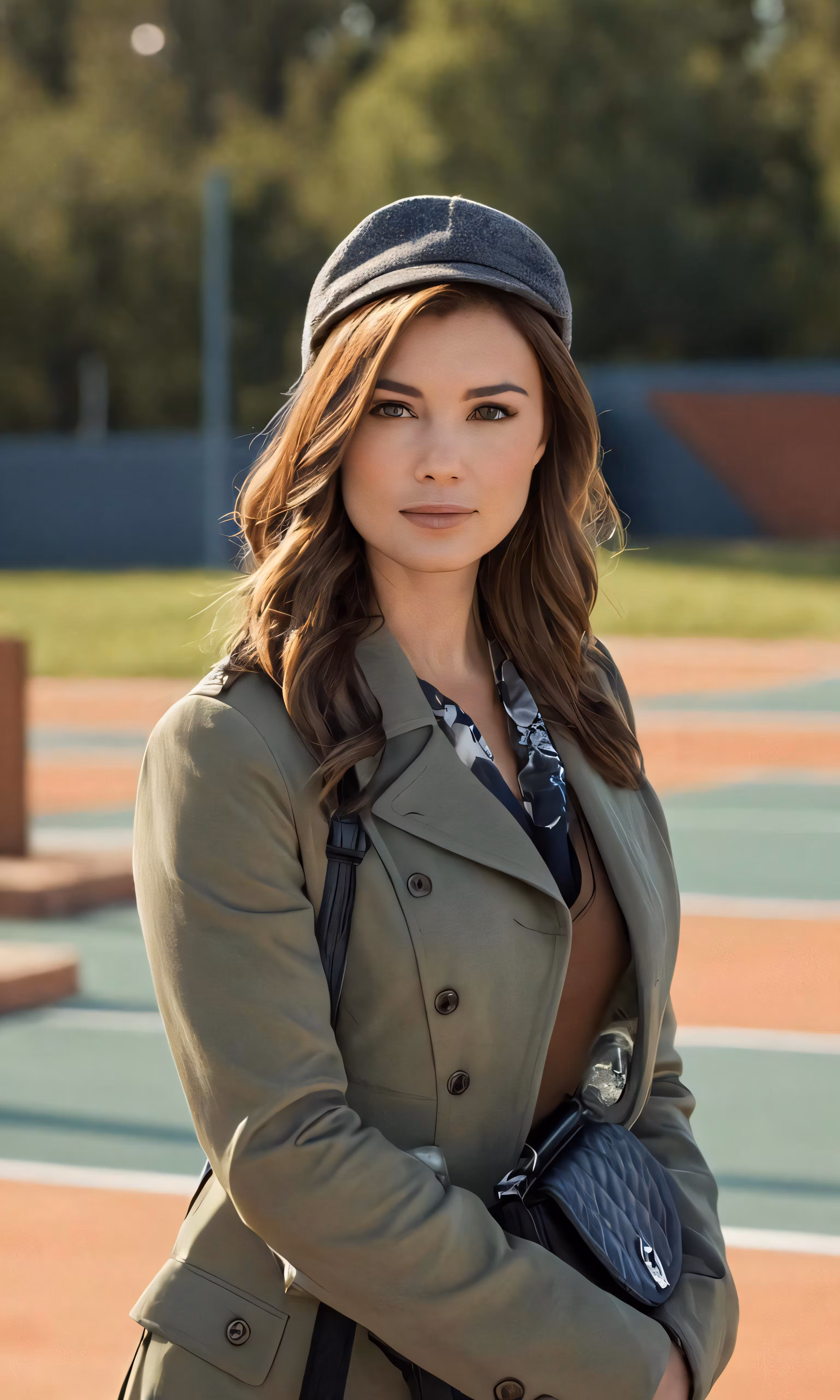 High resolution picture, free to use, an attractive woman wearing a coat and holding a purse