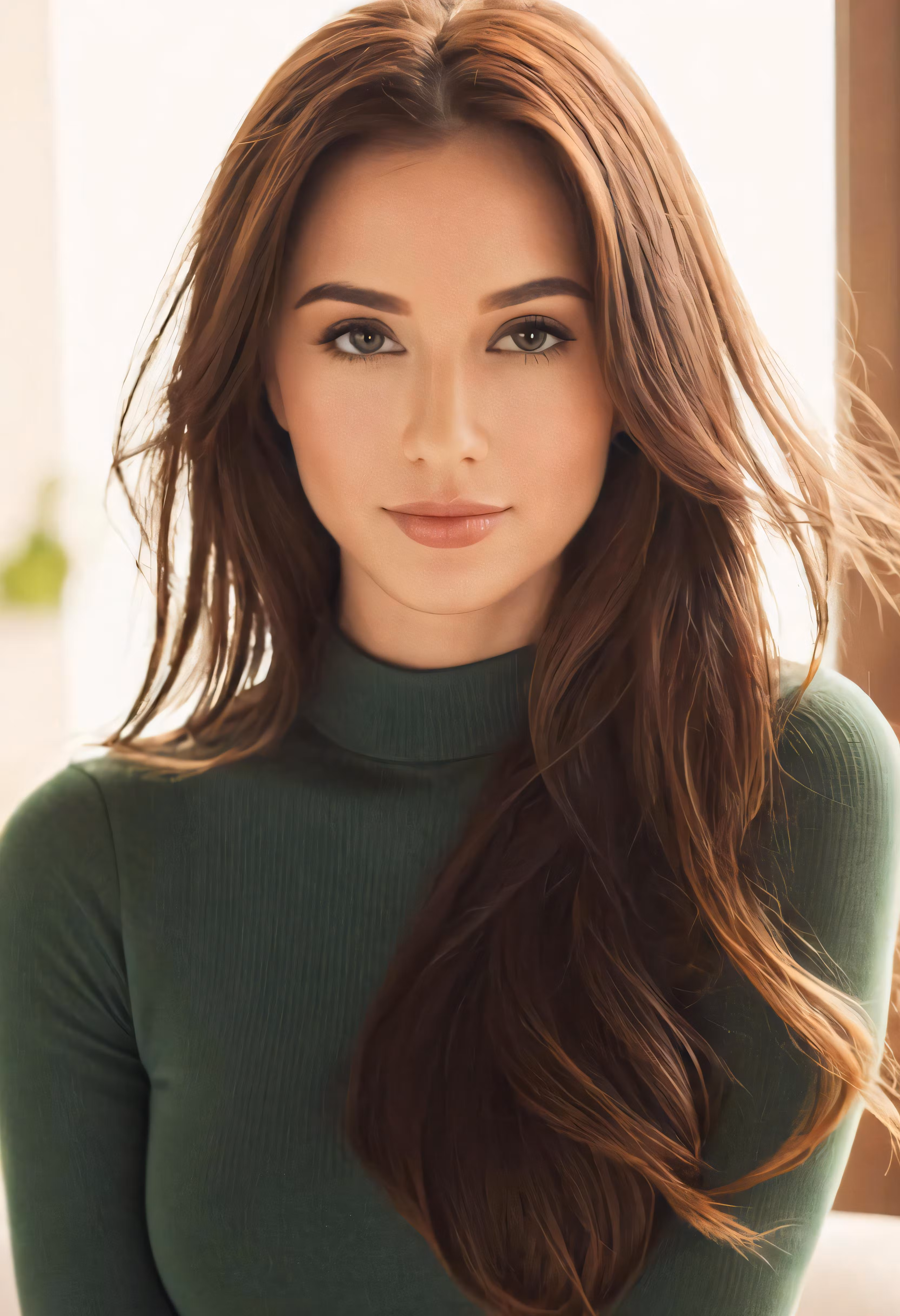 High resolution picture, free to use, an attractive woman wearing a green shirt