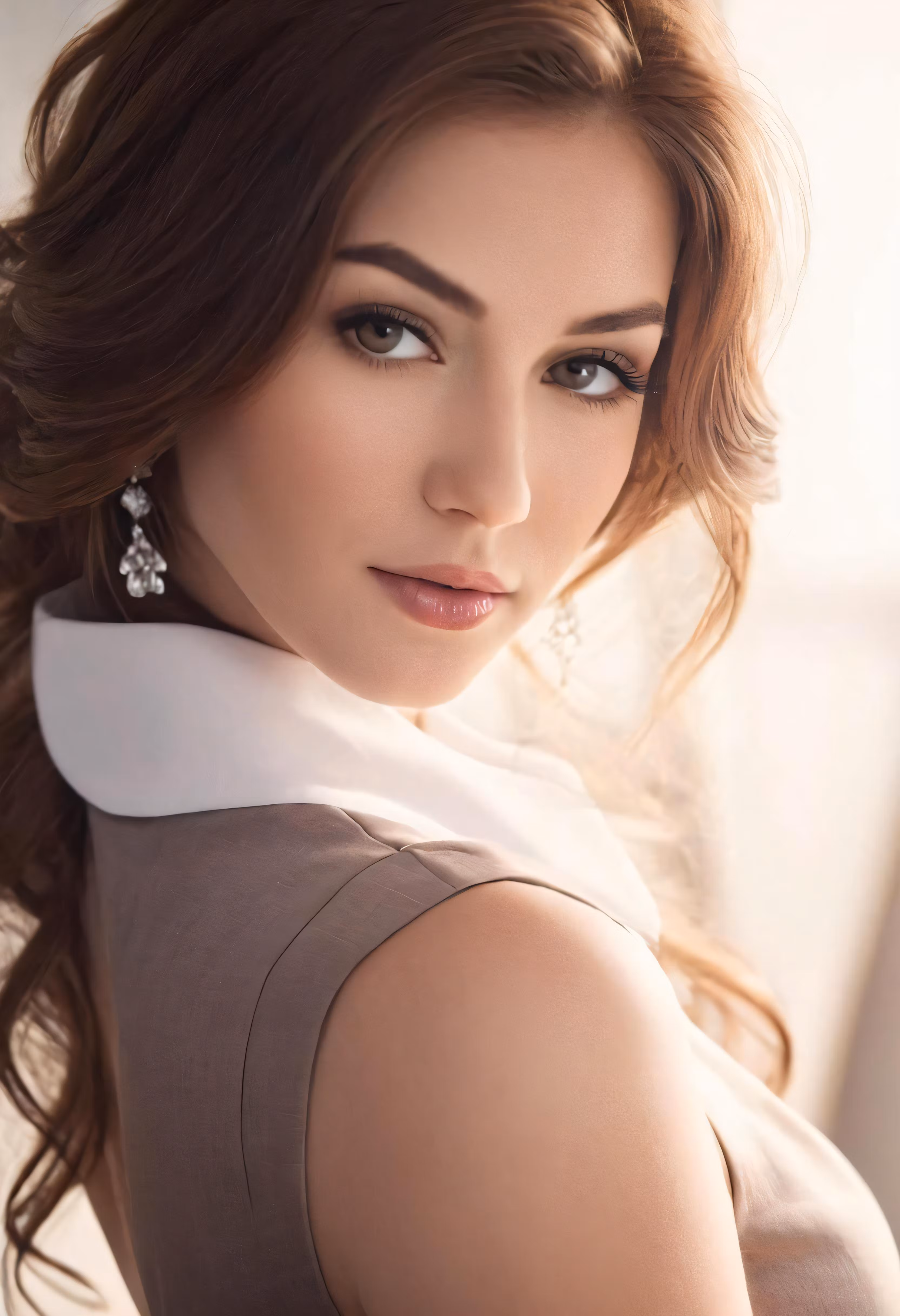 High resolution picture, free to use, an attractive woman wearing a grey top posing for a photograph