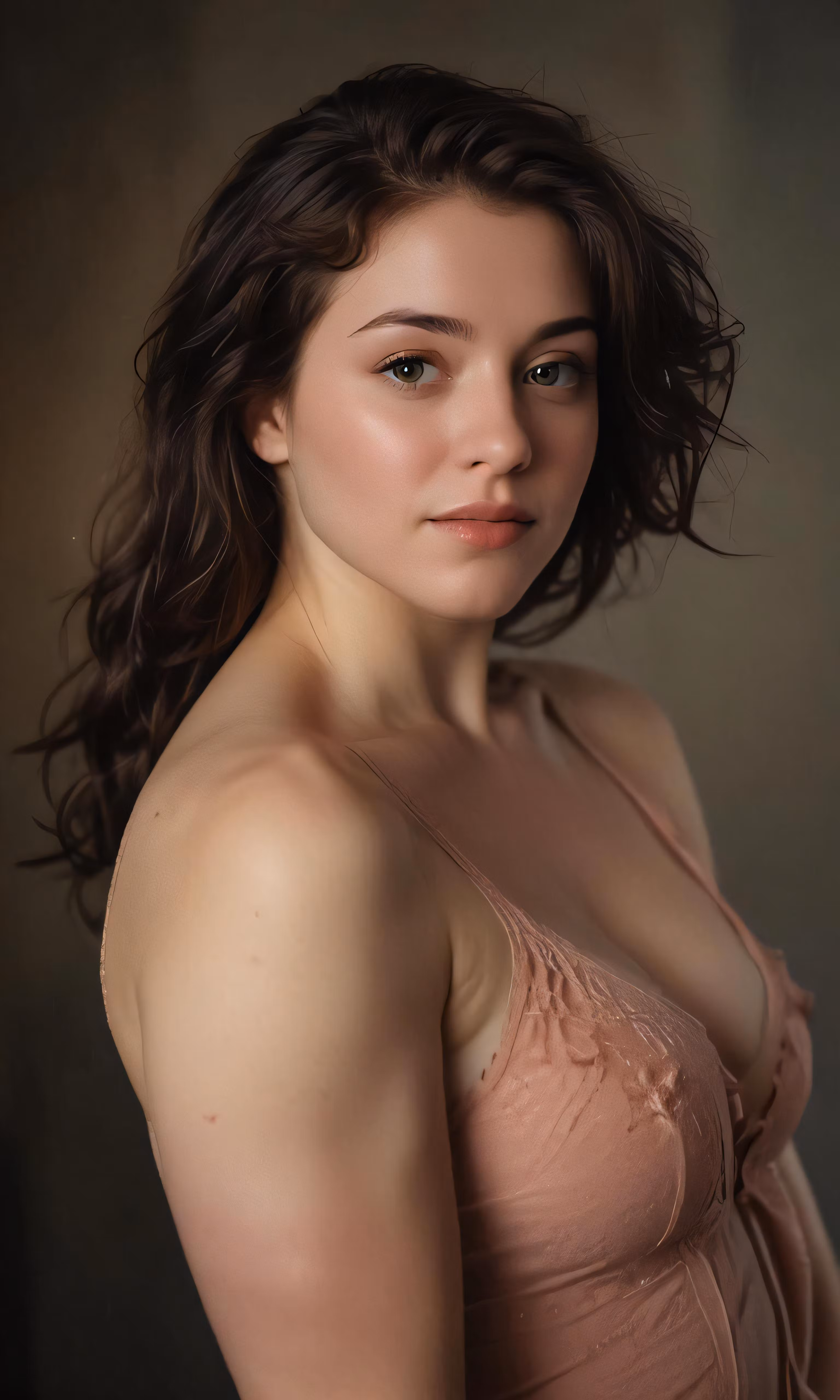 High resolution picture, free to use, an attractive young lady in her tan lingerie posing for the camera