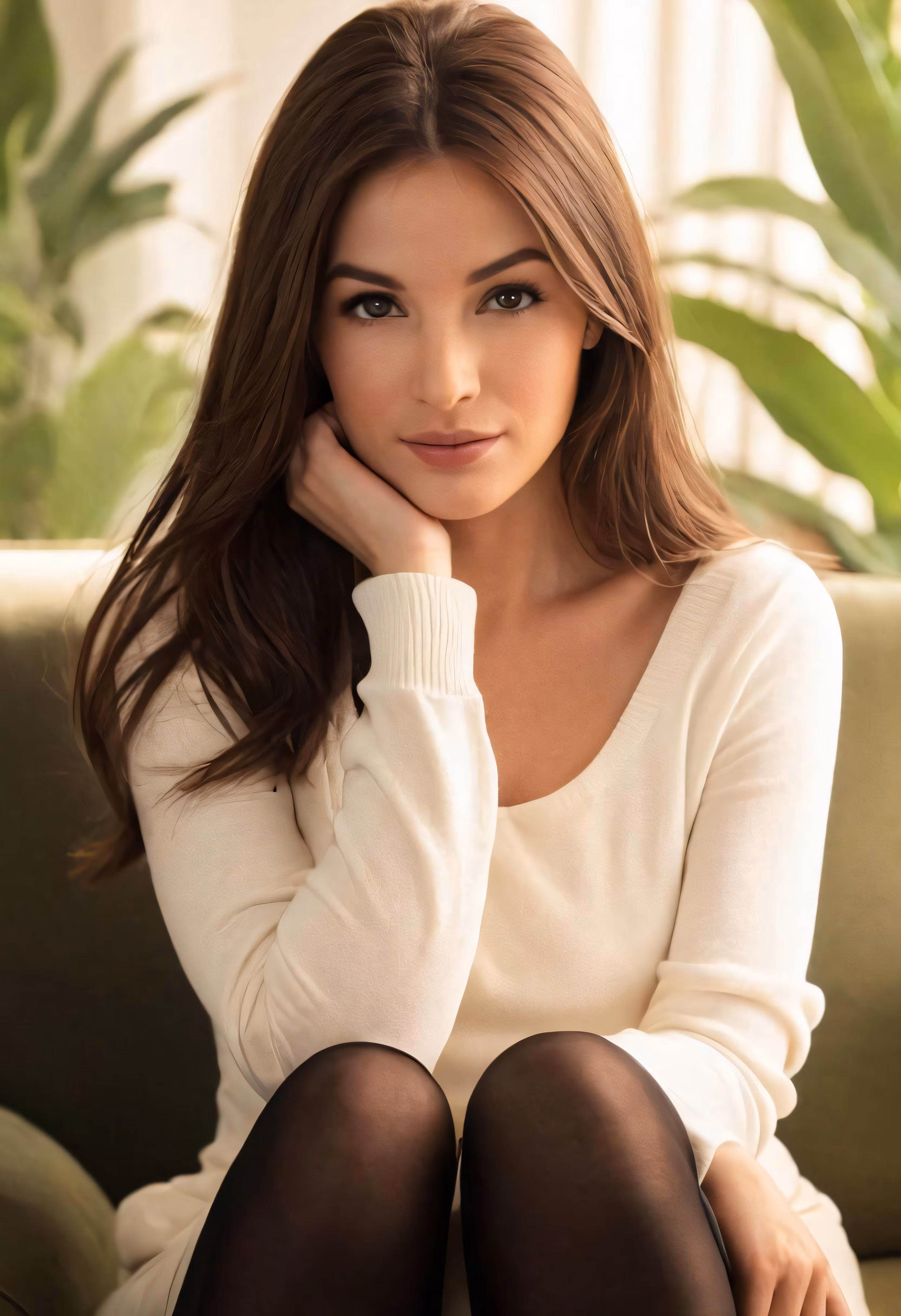 High resolution picture, free to use, an attractive young woman sitting on a couch
