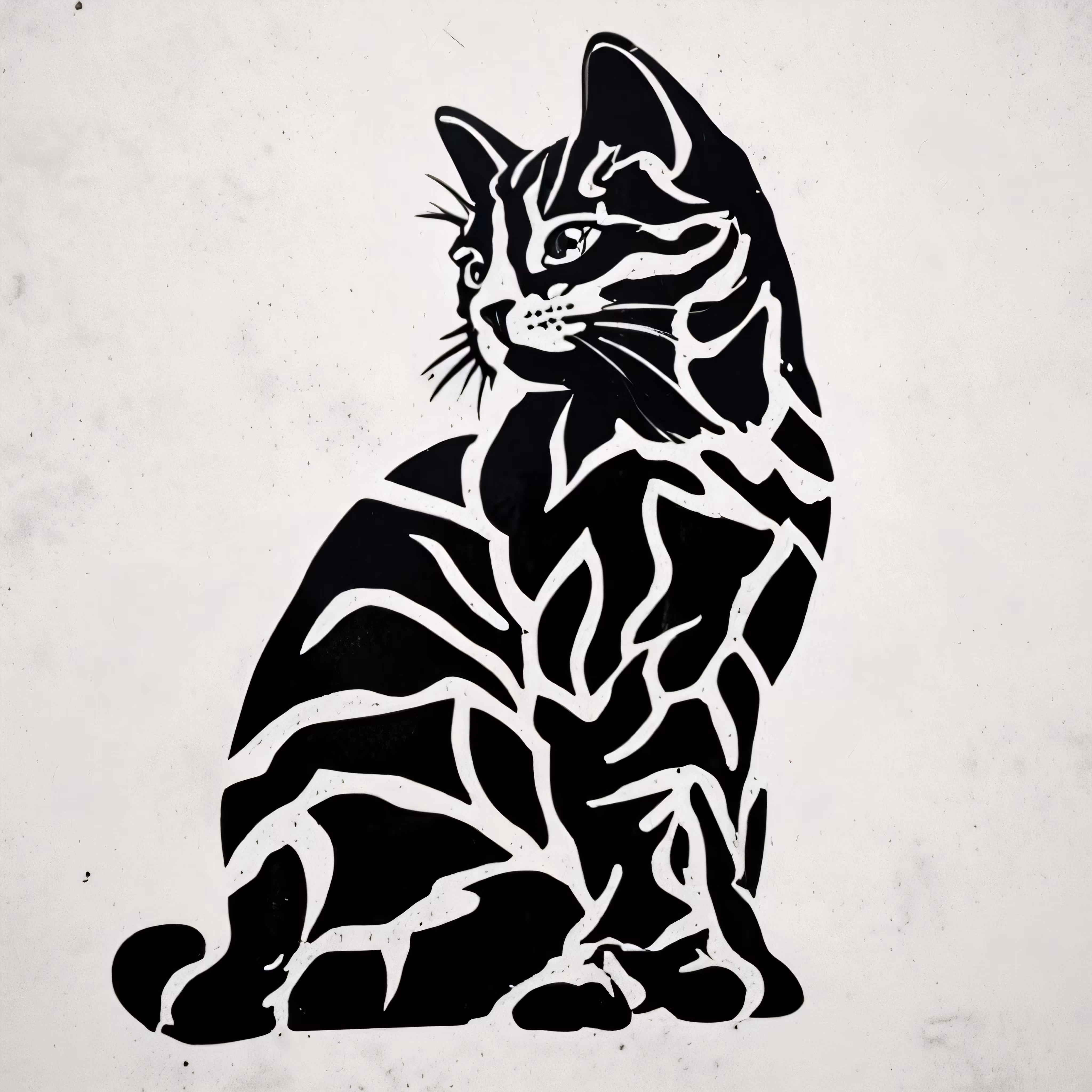 High resolution picture, free to use, an black and white drawing of a cat sitting on the floor