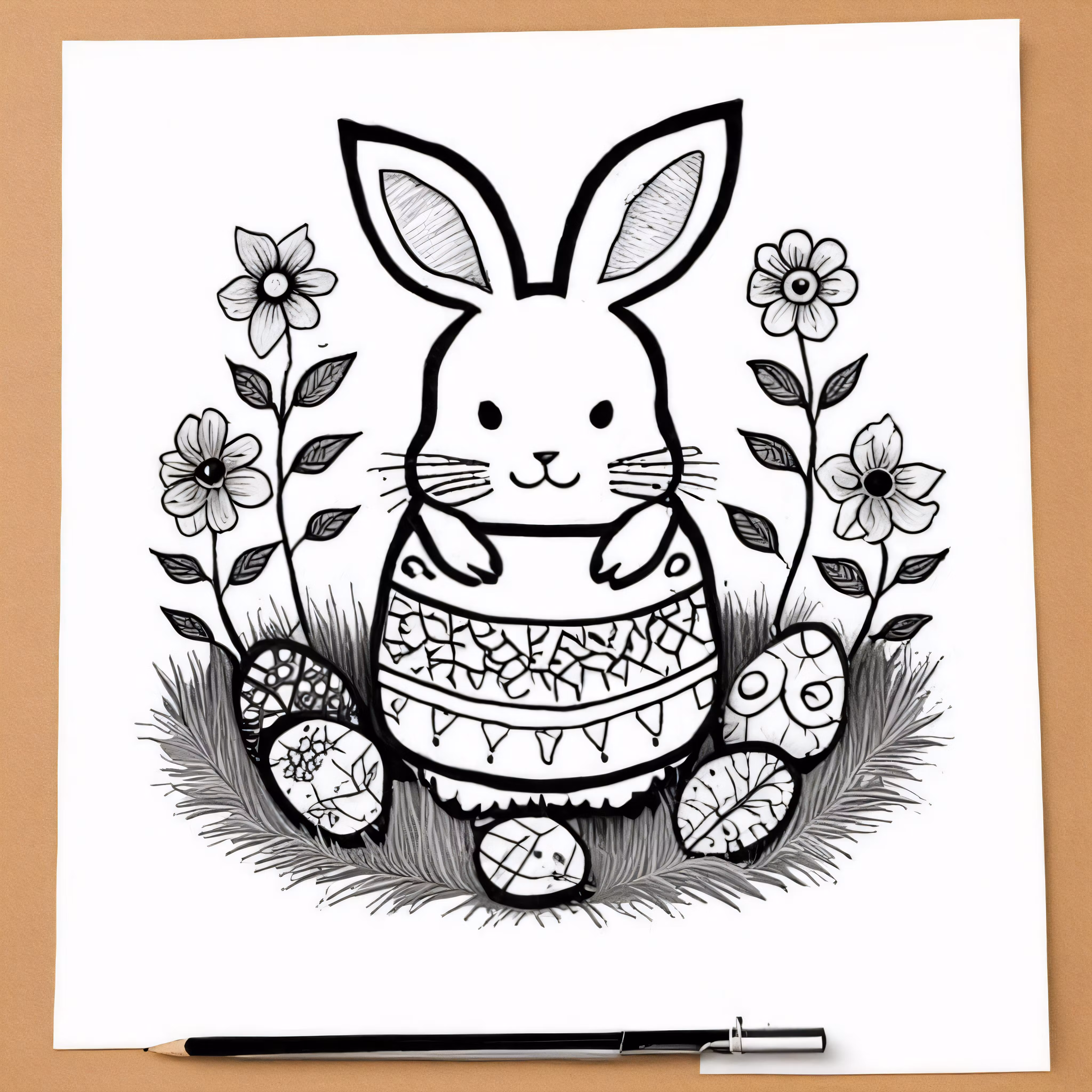 High resolution picture, free to use, an easter bunny with flowers and eggs
