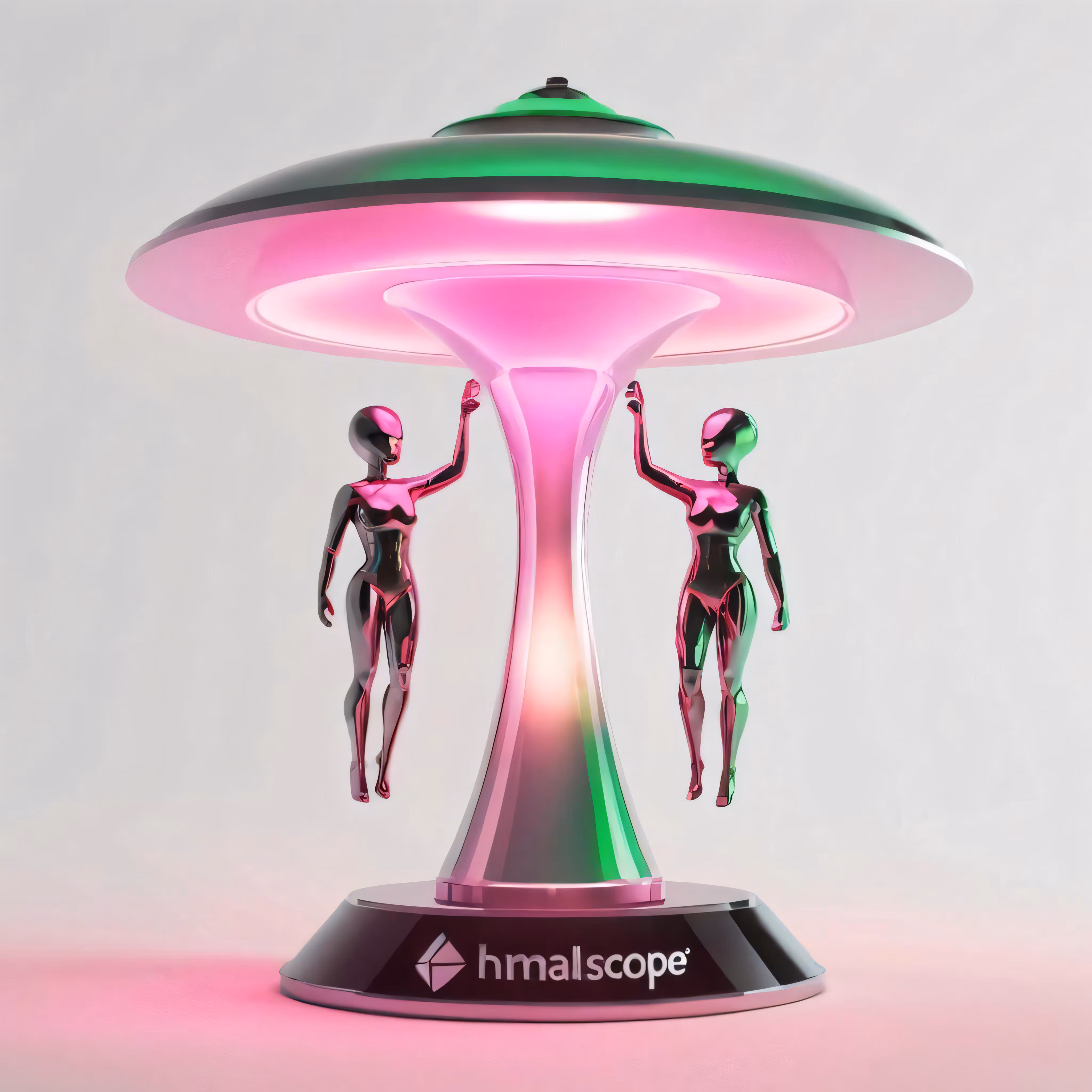 High resolution picture, free to use, an electronic statue with neon lighting sitting on top of a plate