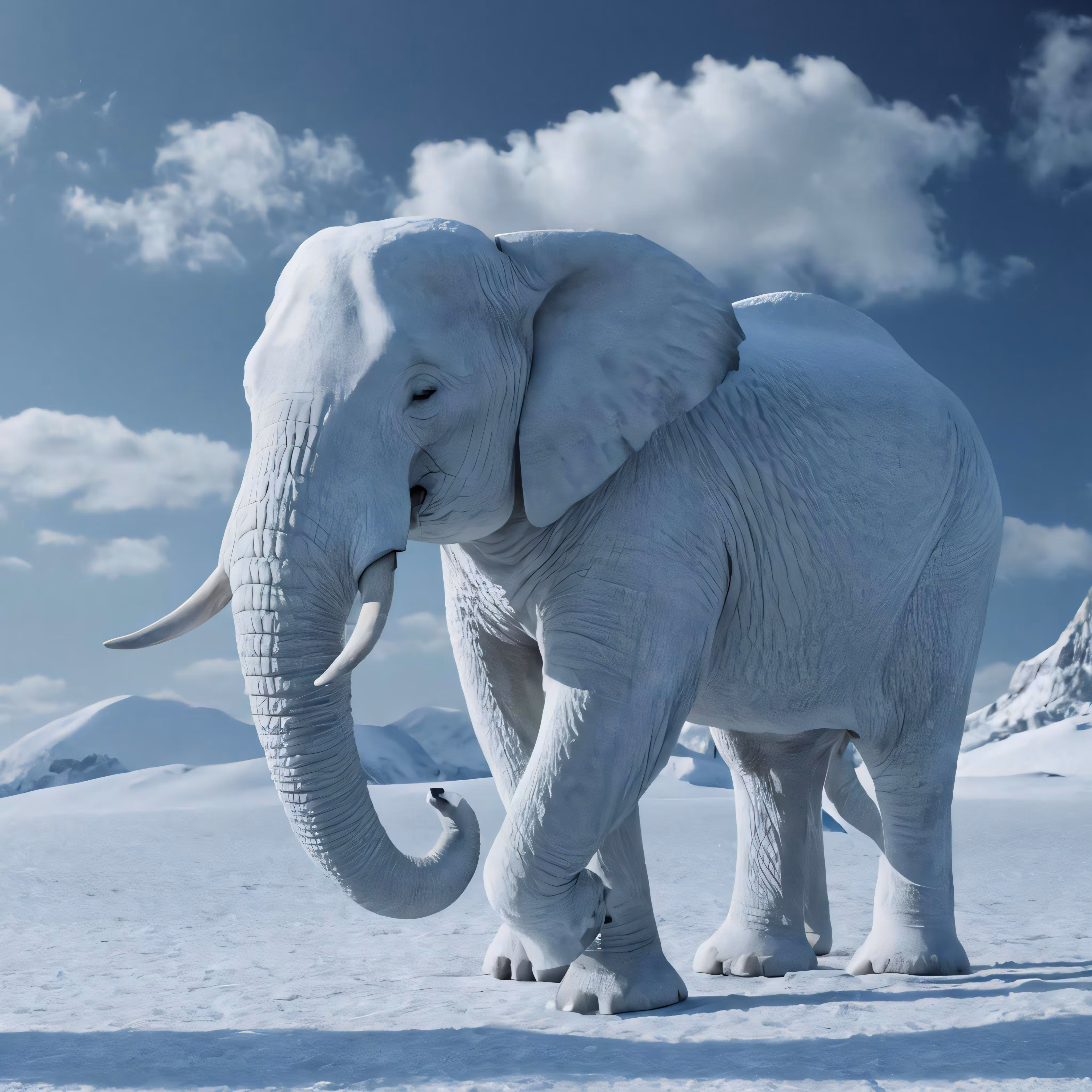 High resolution picture, free to use, an elephant that is white on the snow