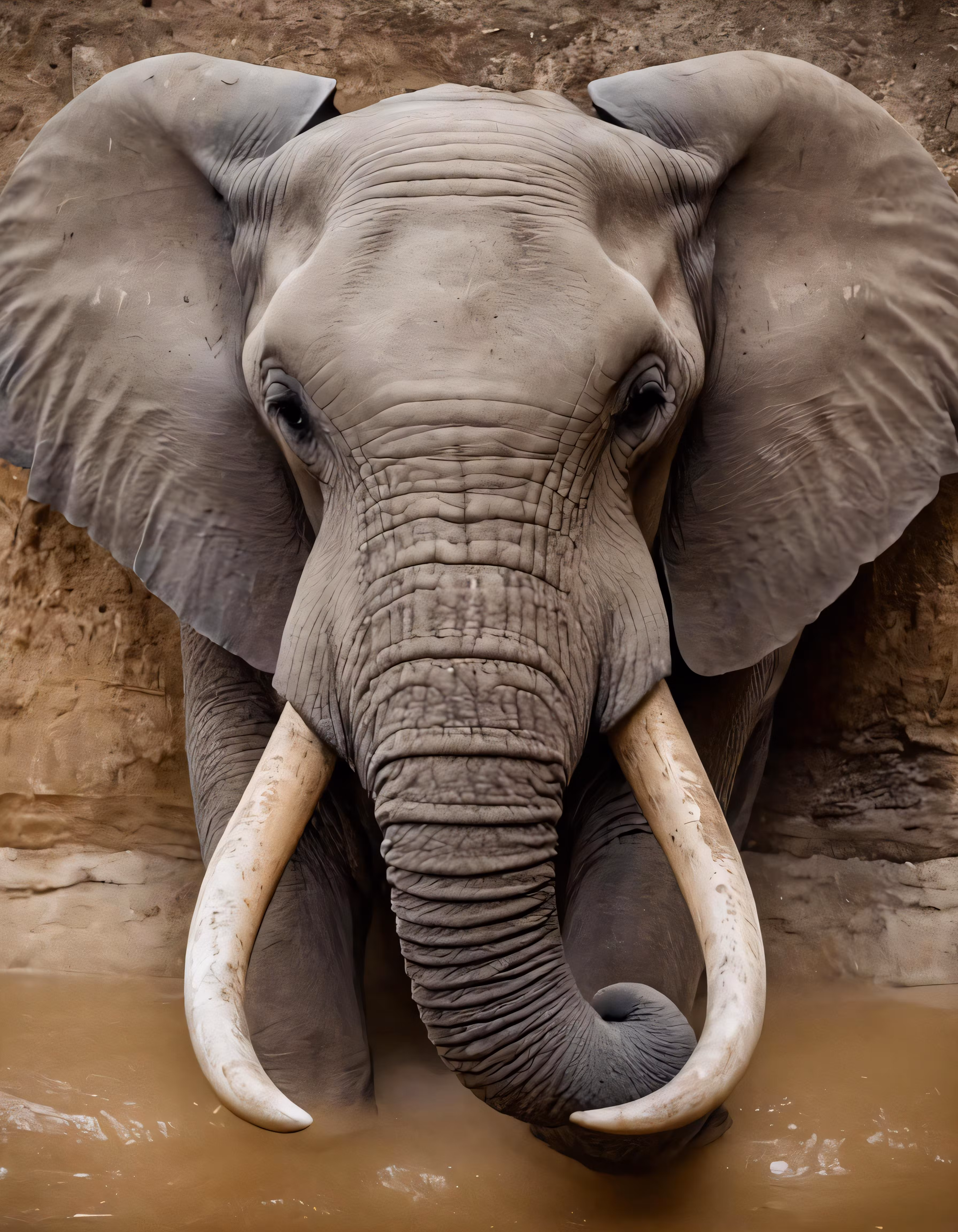High resolution picture, free to use, an elephant with very big tusks and two large trunks