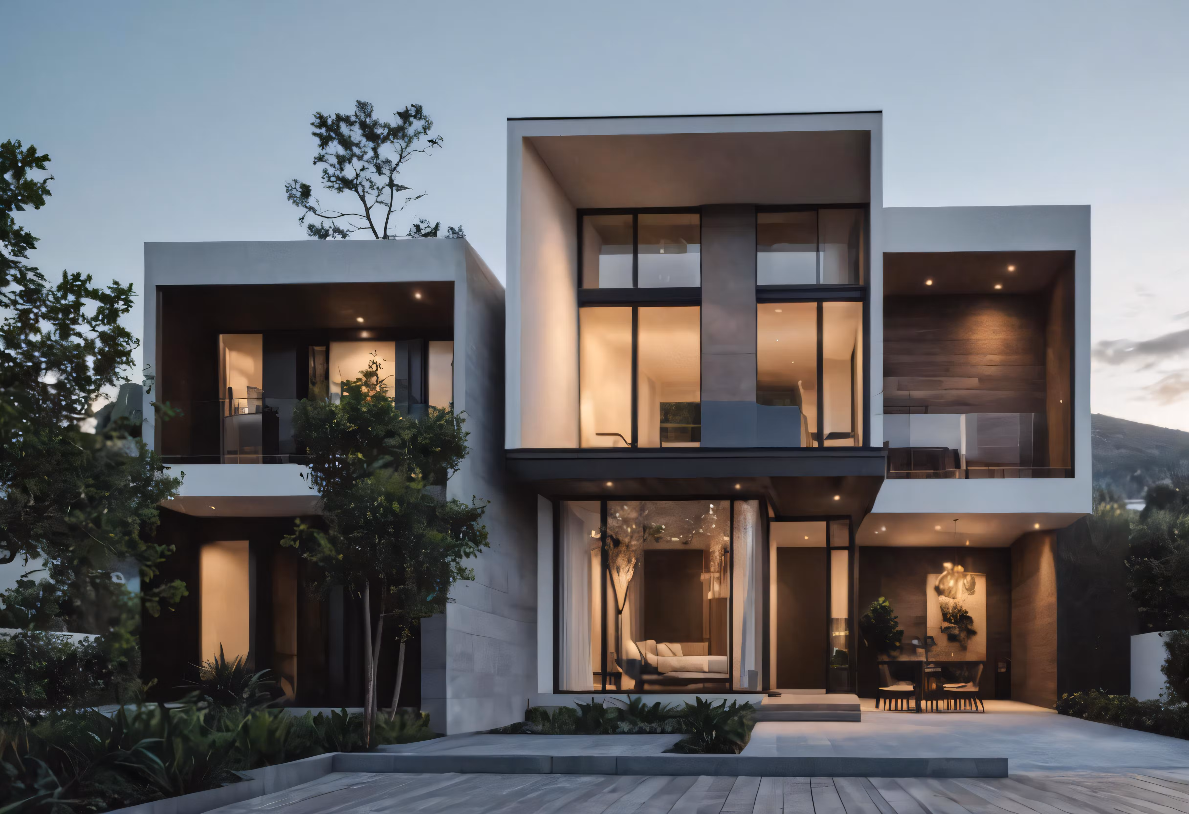 High resolution picture, free to use, an empty pool is between two modern buildings