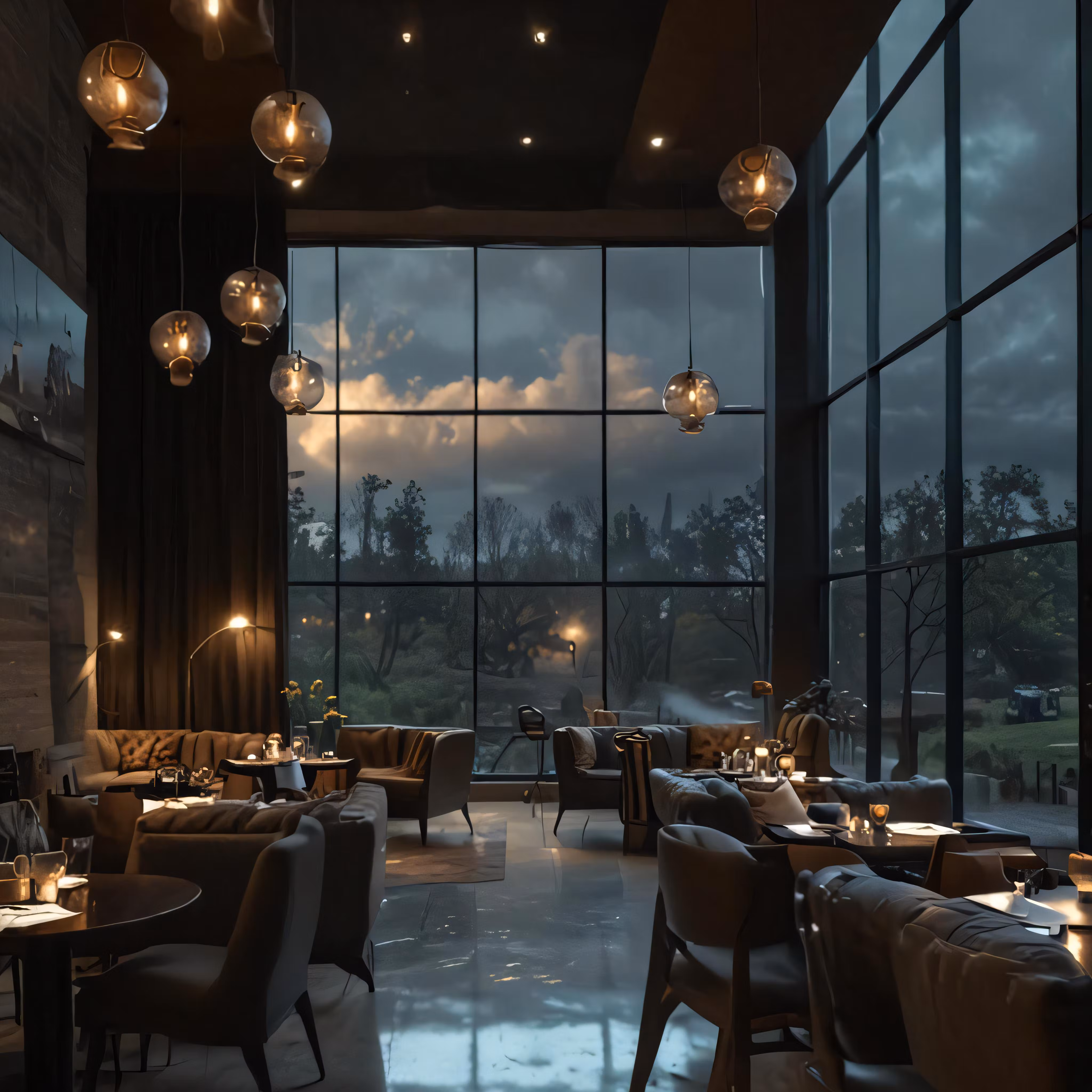 High resolution picture, free to use, an empty restaurant with a view of the sky