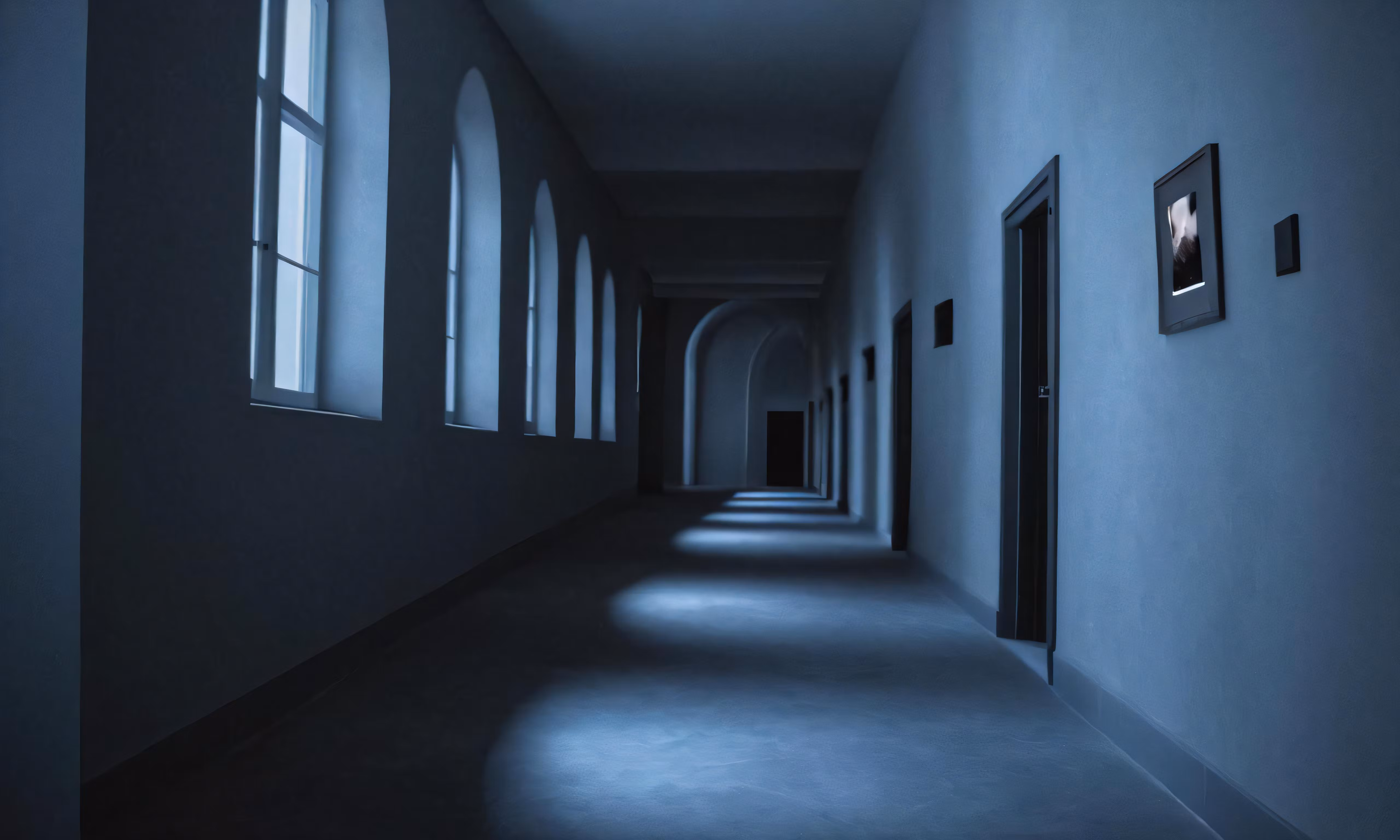 High resolution picture, free to use, an empty room with four windows and one doorway