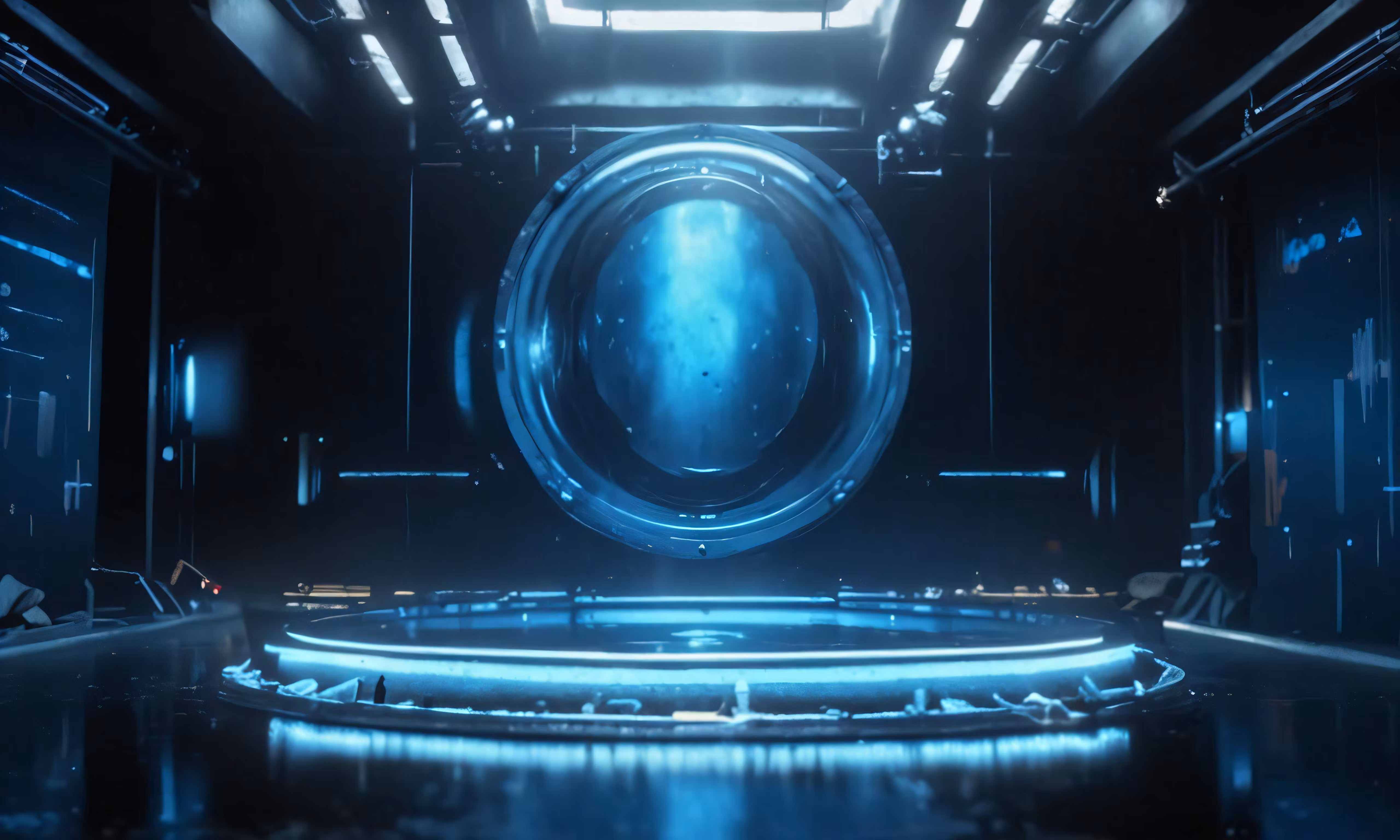 High resolution picture, free to use, an empty space with a neon ring and other lights