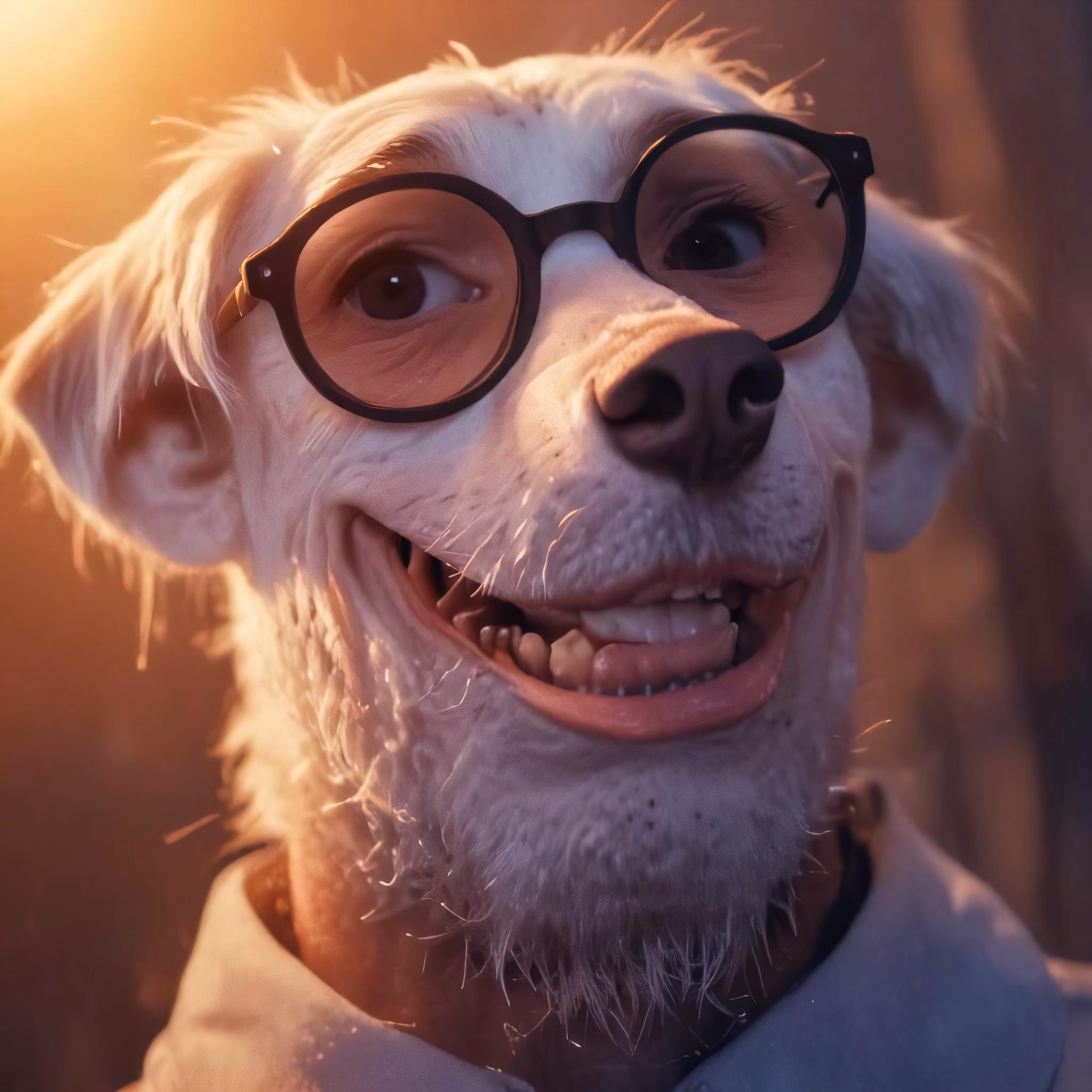 High resolution picture, free to use, an extremely realistic photo of a dog wearing glasses