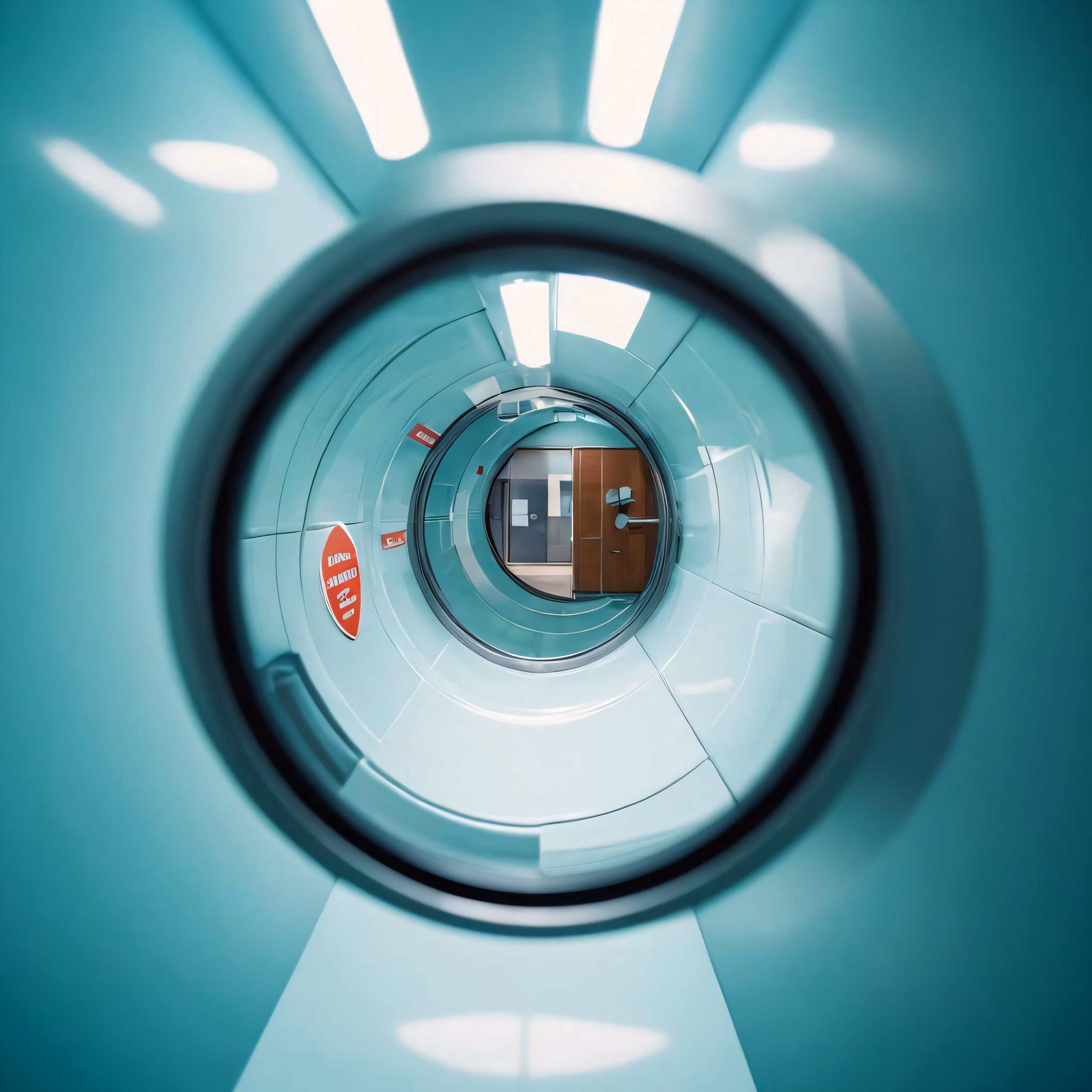 High resolution picture, free to use, an eye   looking view of a blue wall with a doorway and small red exit sign
