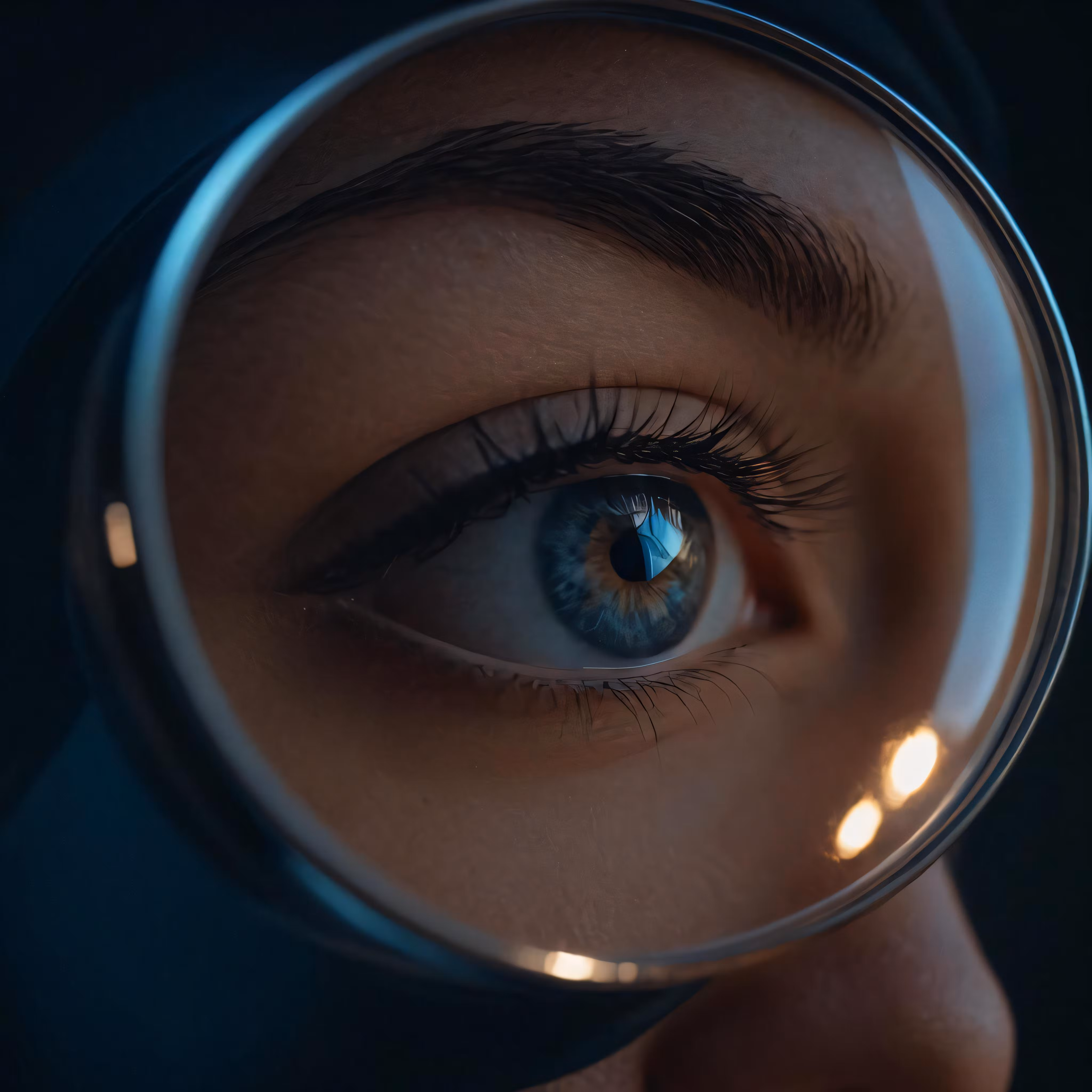 High resolution picture, free to use, an eye is looking through a magnifying glass