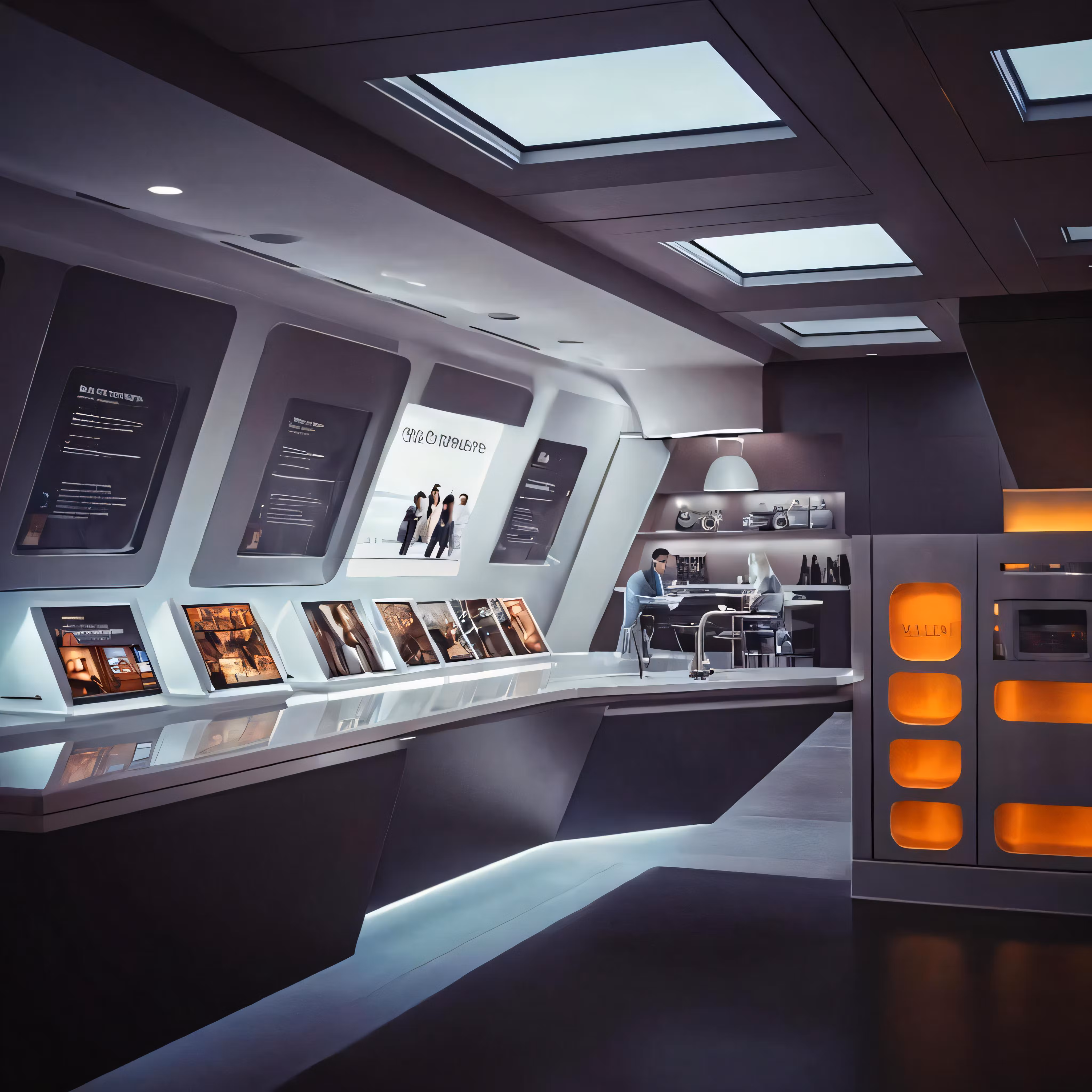 High resolution picture, free to use, an futuristic looking restaurant with high ceiling lights