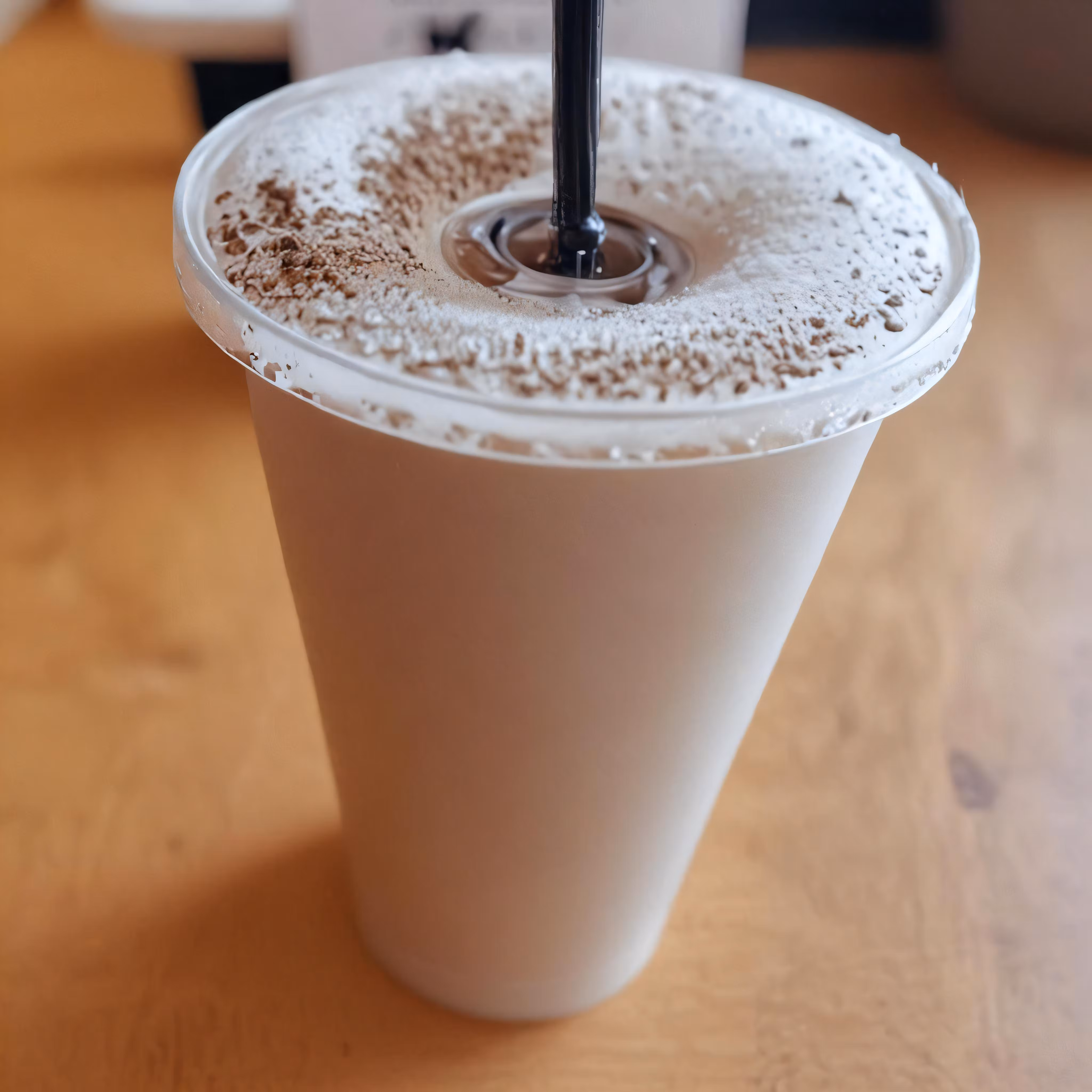 High resolution picture, free to use, an iced drink in a plastic cup with black lid