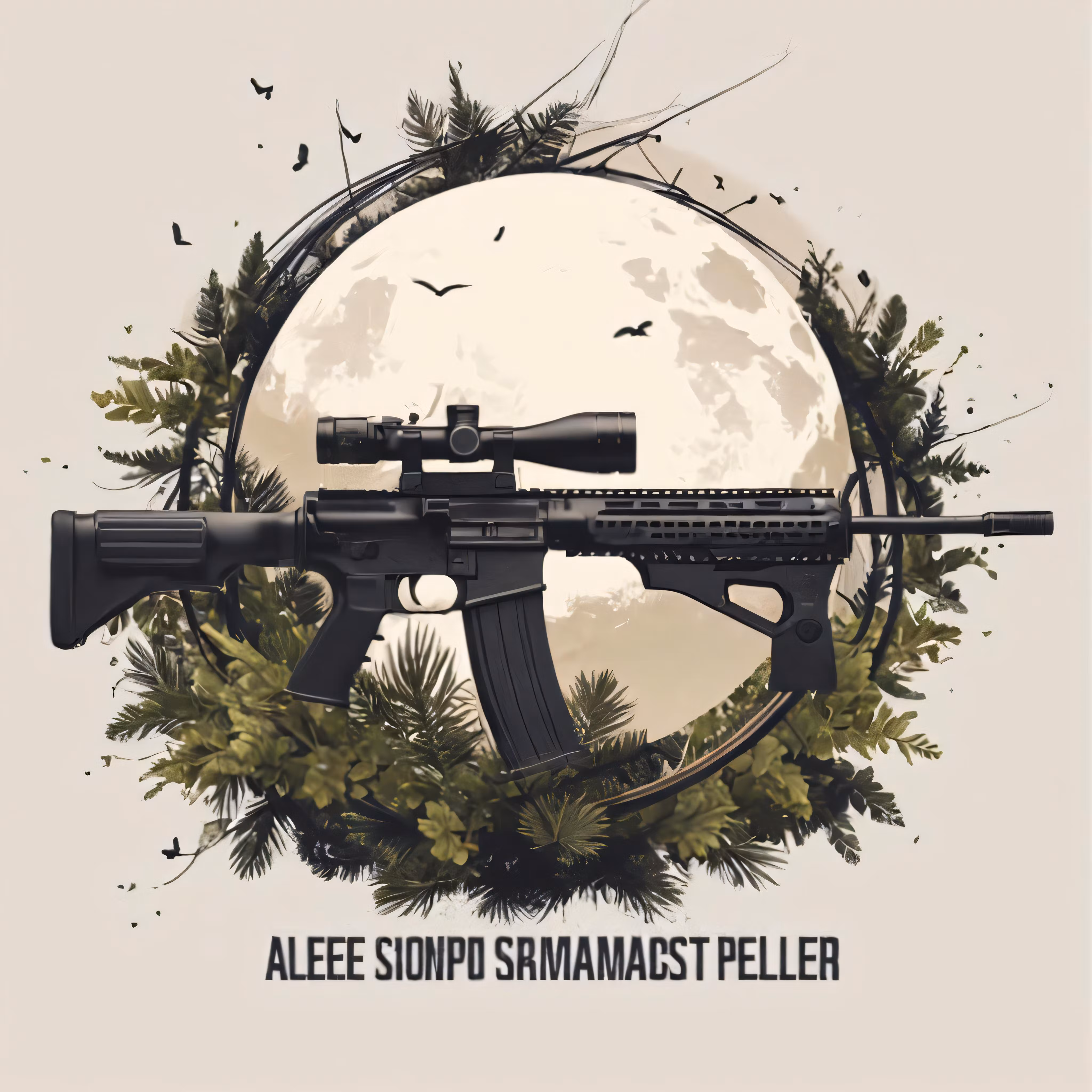 High resolution picture, free to use, an illustrated image of an automatic rifle on a circular white background