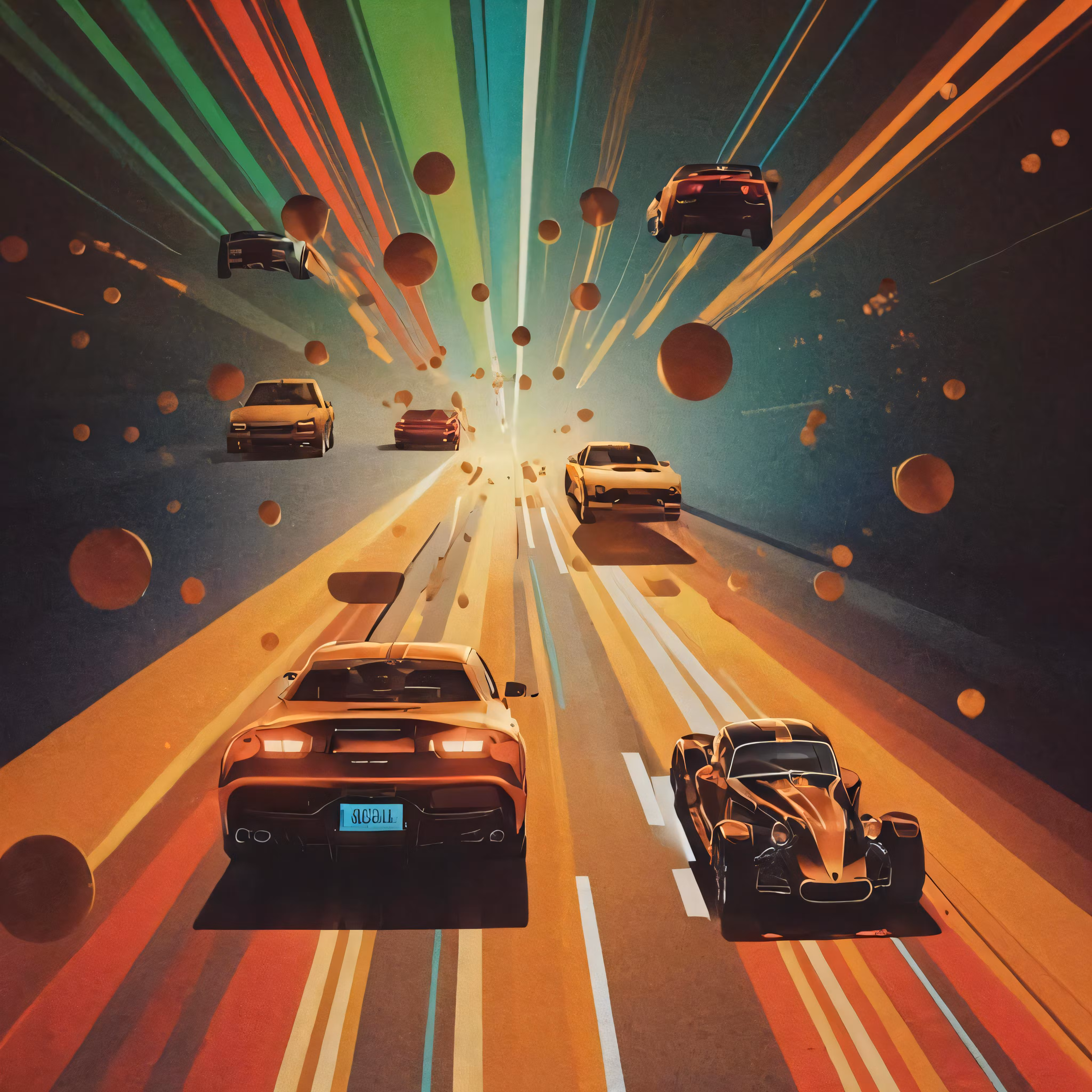 High resolution picture, free to use, an illustrated poster of cars in a traffic jam