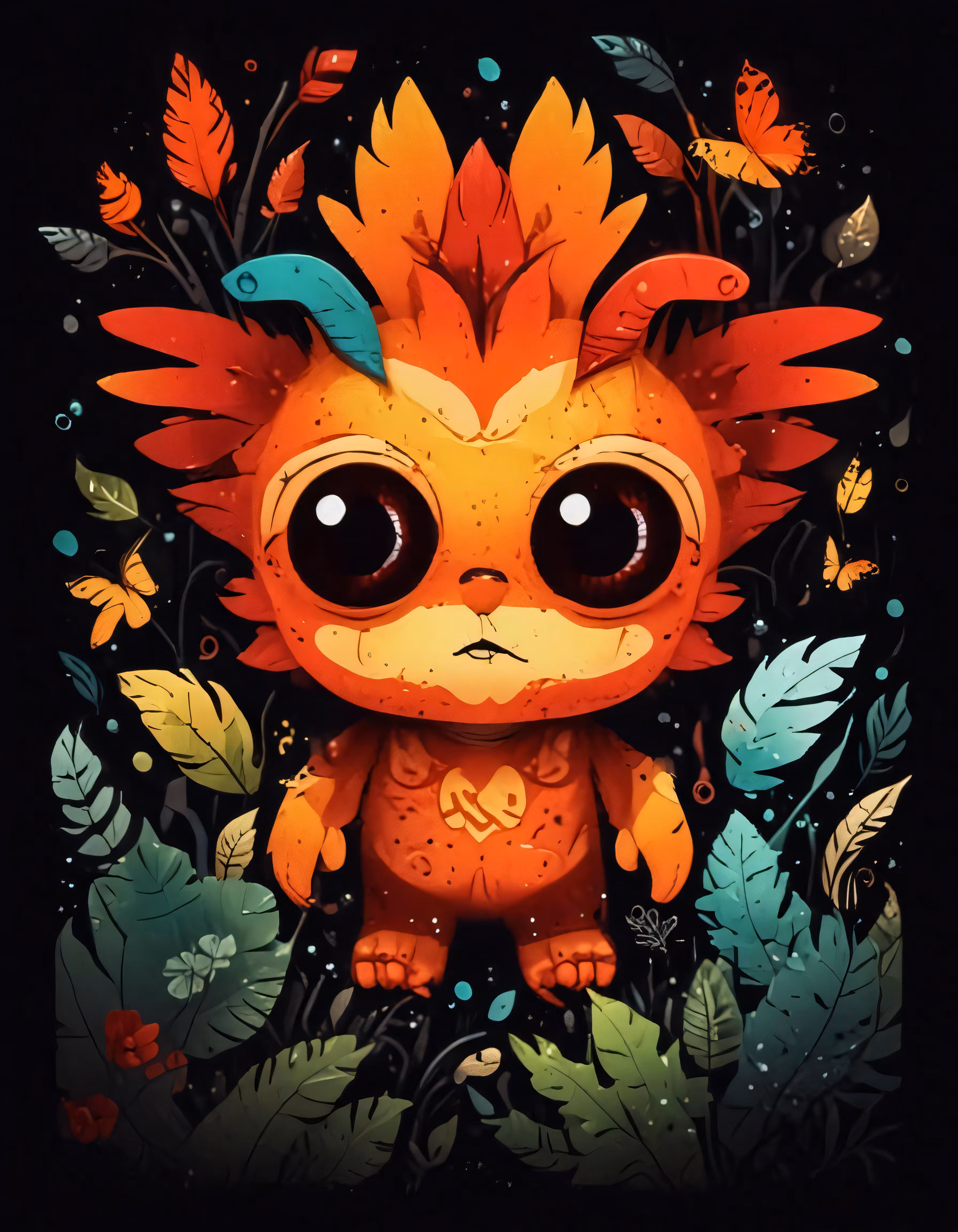 High resolution picture, free to use, an illustration of a baby dragon with leaves in its hair
