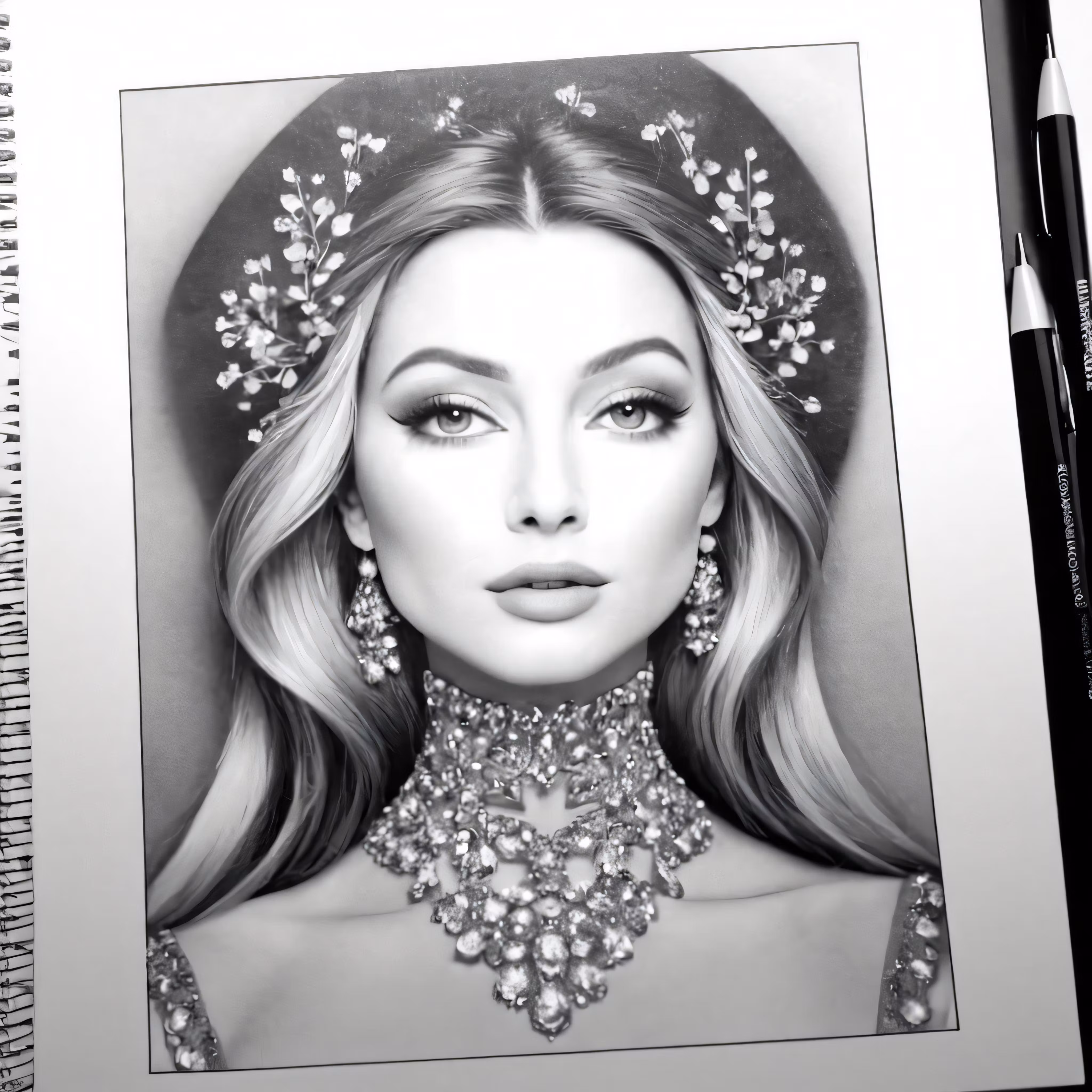 High resolution picture, free to use, an illustration of a beautiful woman in a crystal necklace