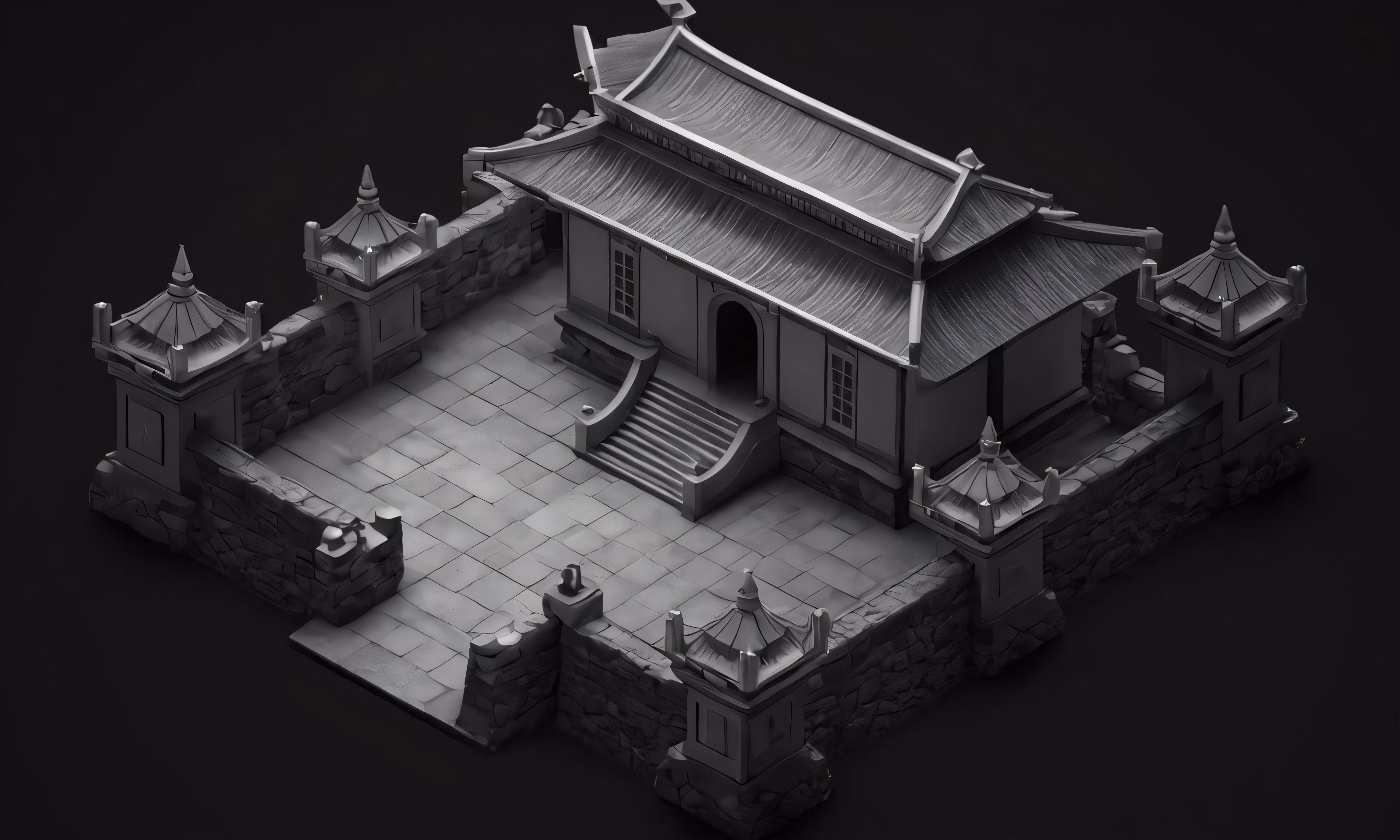 High resolution picture, free to use, an illustration of a black and white castle with grey brick walls