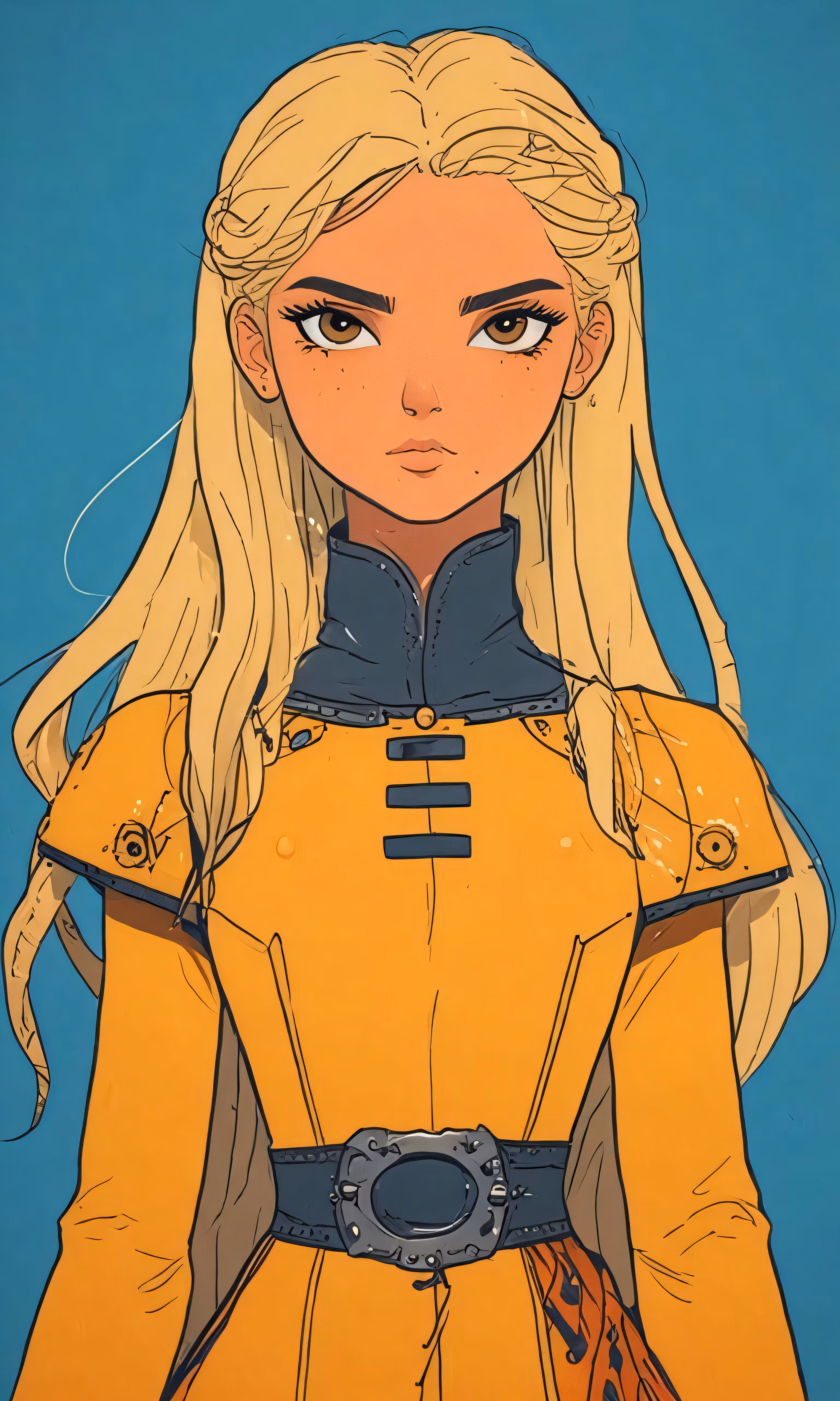 High resolution picture, free to use, an illustration of a blonde haired female wearing yellow and blue clothes