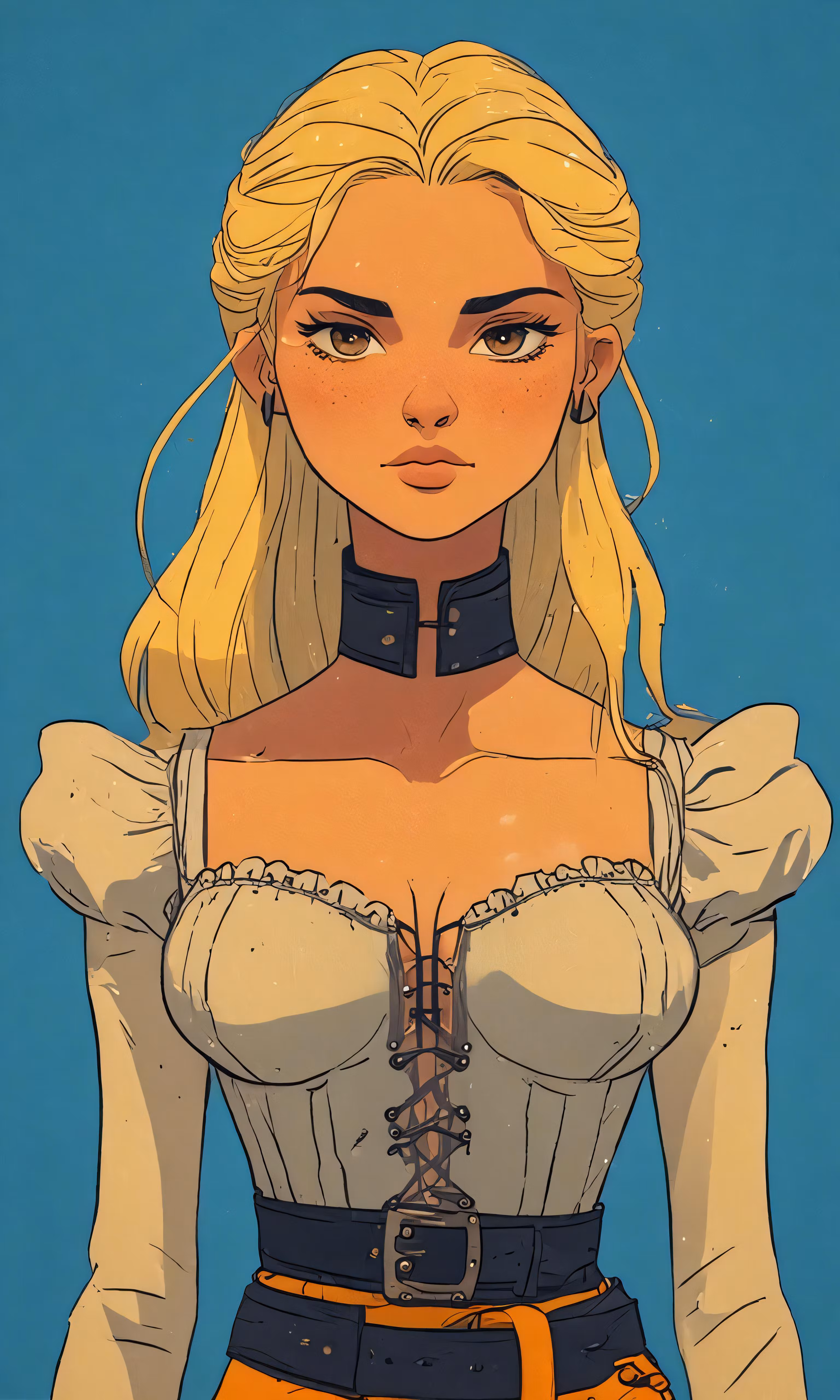 High resolution picture, free to use, an illustration of a blonde woman wearing a collared shirt