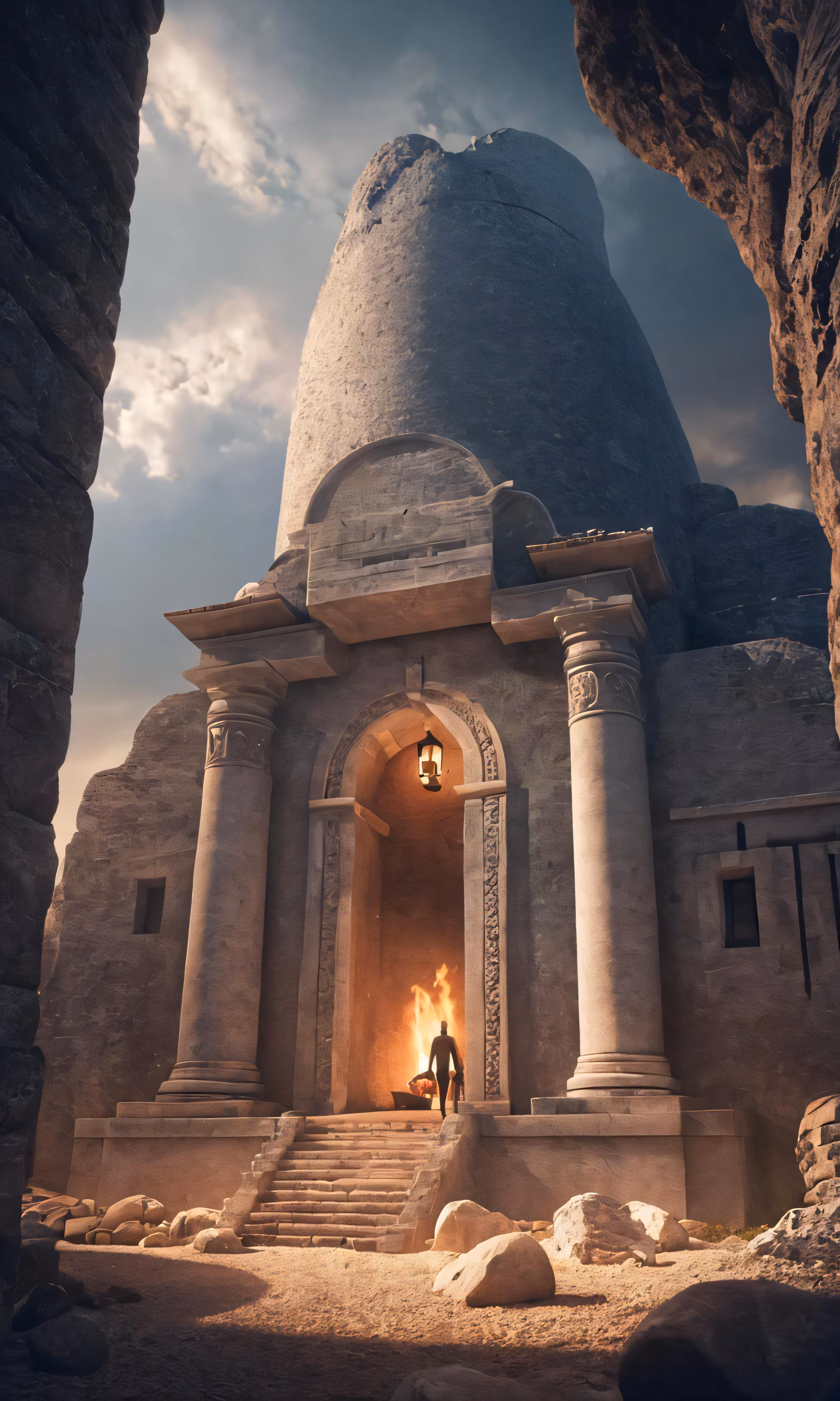 High resolution picture, free to use, an illustration of a building with columns and a stairway