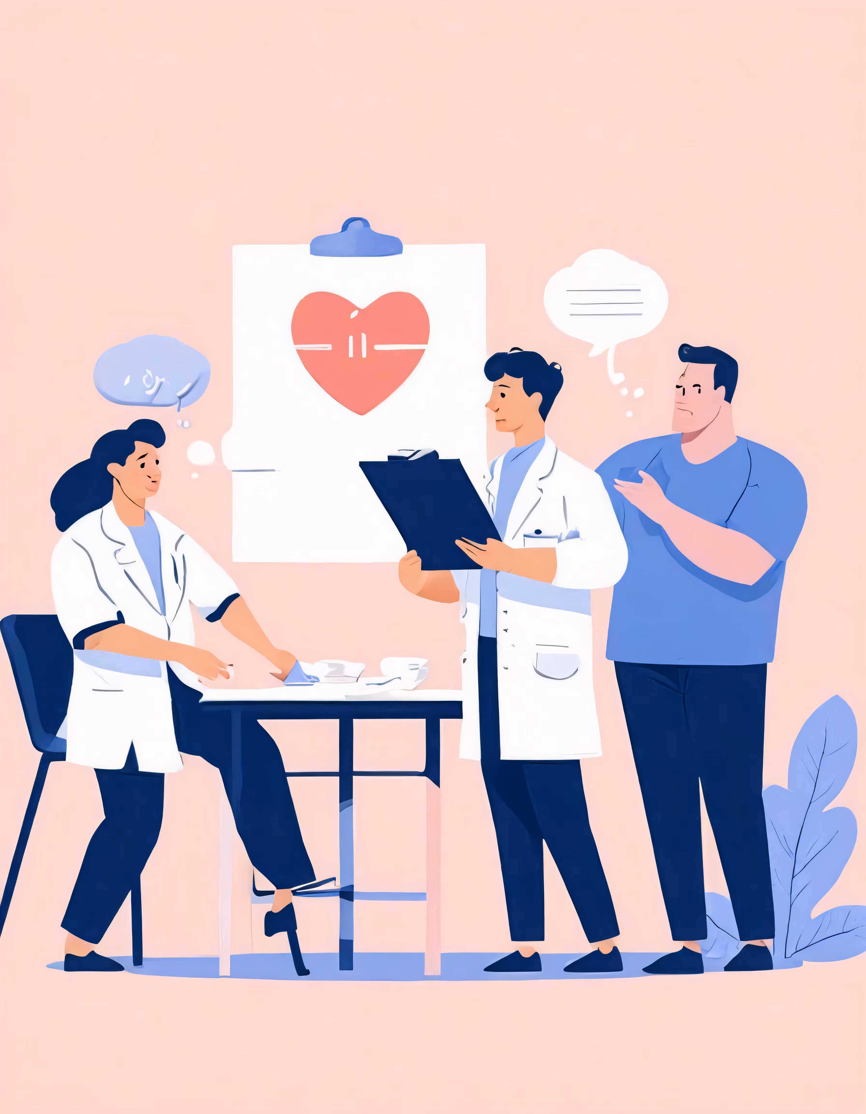 High resolution picture, free to use, an illustration of a doctor and nurse talking to a patient